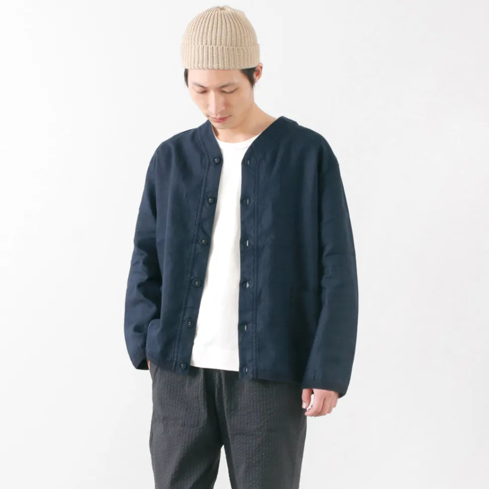 Cut and sewn shirt cardigan made of high quality French linen. It is slightly loose in size, with a bouncy, three-dimensional silhouette unique to the material and a cool, relaxed and effortless fit.
