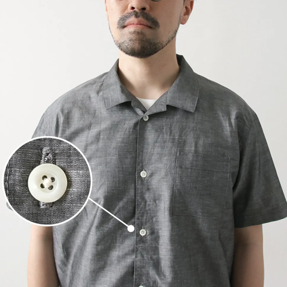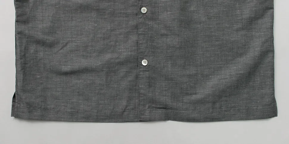 This open-collar shirt is made of elegant cotton linen from the traditional linen manufacturer “Herdmans.” Although linen often has a prickly feel, this shirt is processed with advanced technology to create a supple, resilient texture and material.