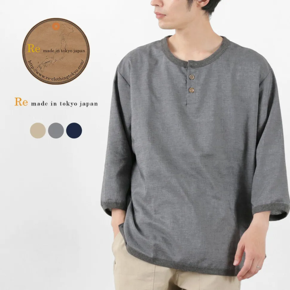 RE MADE IN TOKYO JAPAN introduces a henley neck shirt made of linen canvas fabric.