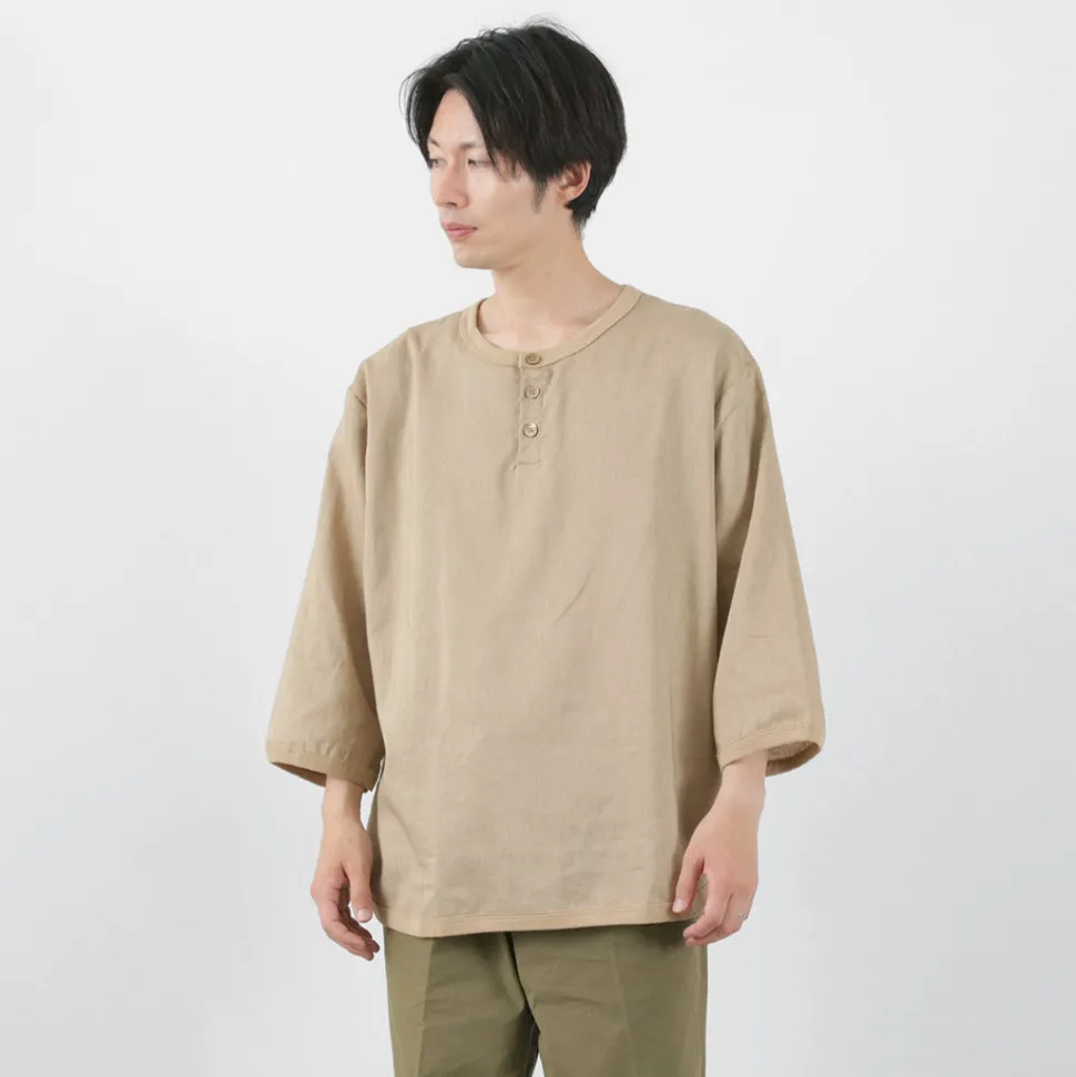 RE MADE IN TOKYO JAPAN introduces a henley neck T-shirt made of linen canvas fabric.