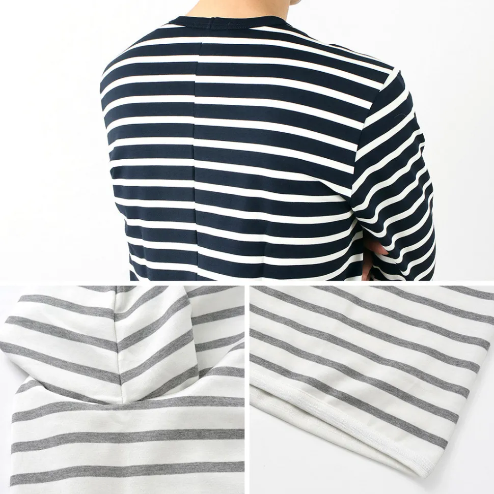 The neckline, cuffs, and hem, which are prone to deterioration over long-term use, are reinforced with wide piping for durability. The T-shirt inherits the materials, details, and pattern work, delivering a quality that exceeds its price.