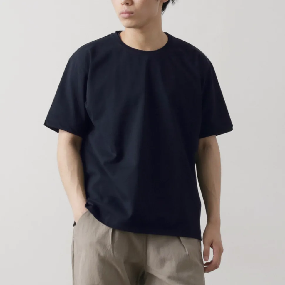 The appeal of this dress T-shirt is its elegant luster and the heavy-weight fabric thickness that gives it a sense of weight. Not only is it beautiful, but it is also a great point of ingenuity that can be used for a long time, incorporating materials and details with excellent durability. It is a piece that can be relied on at any time, on or off the job.