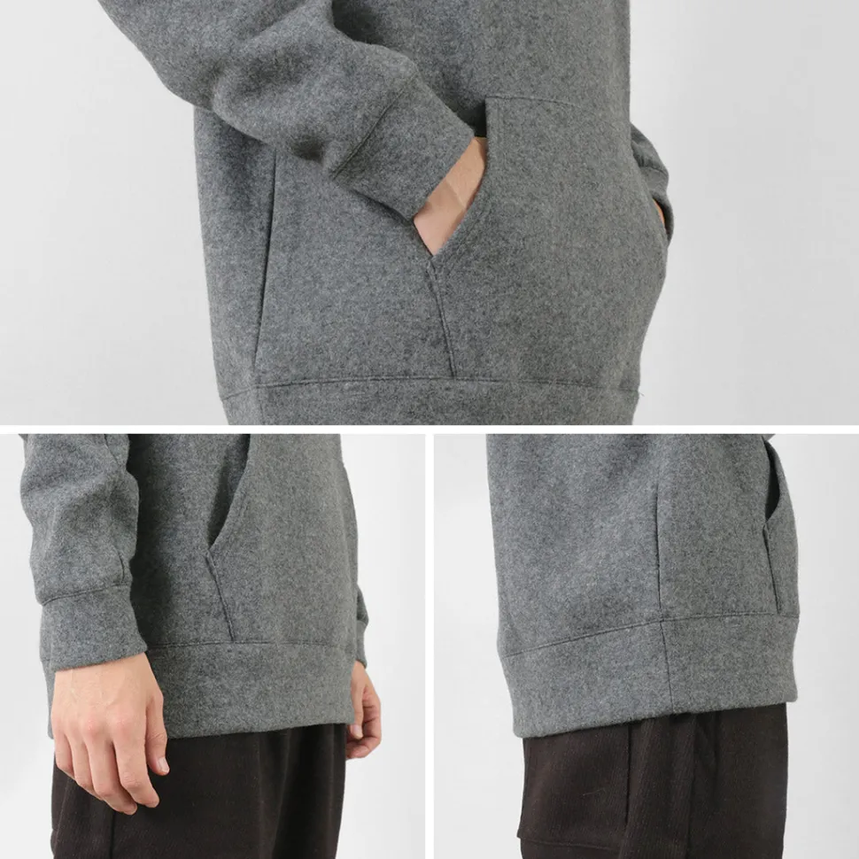 From RE comes this pullover hoodie made of high quality wool melton fabric from Bishu.