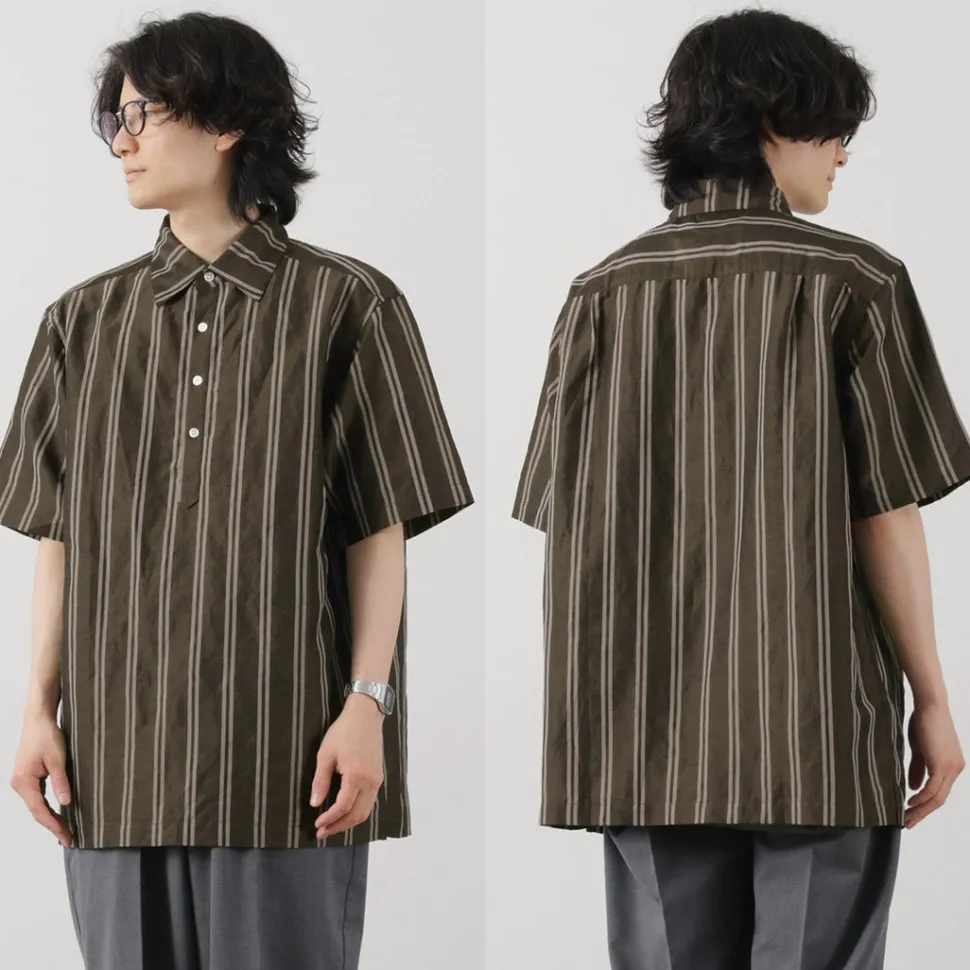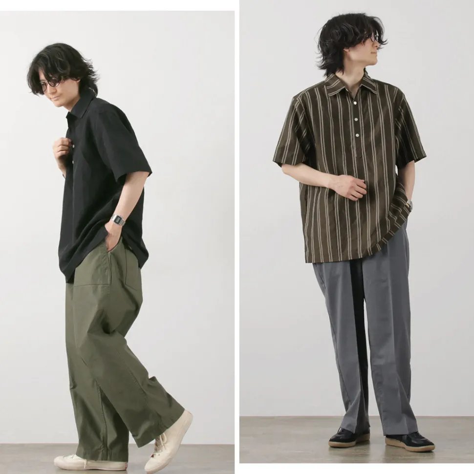 While it is comfortable and easy to wear, it is not too casual with its calm colors, and the wide spread collar pulls the whole look together. It is a gem that adds smartness to your fashion in the sweaty season when you want to spend your time comfortably.