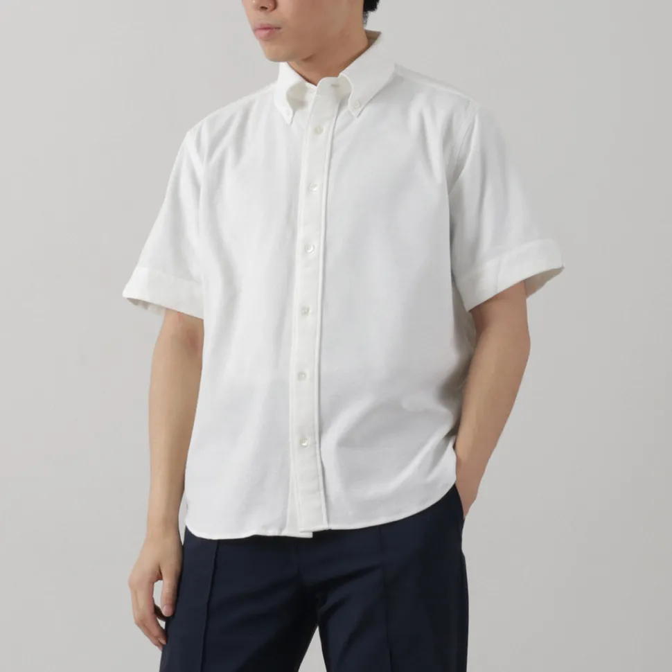 For the most important part of a button-down shirt, the collar, adjustments are made to the shape and button positions to make it look more three-dimensional. All buttons are made of high-quality Japanese shell buttons, and the collar buttons are deliberately made small to create a clean neckline.