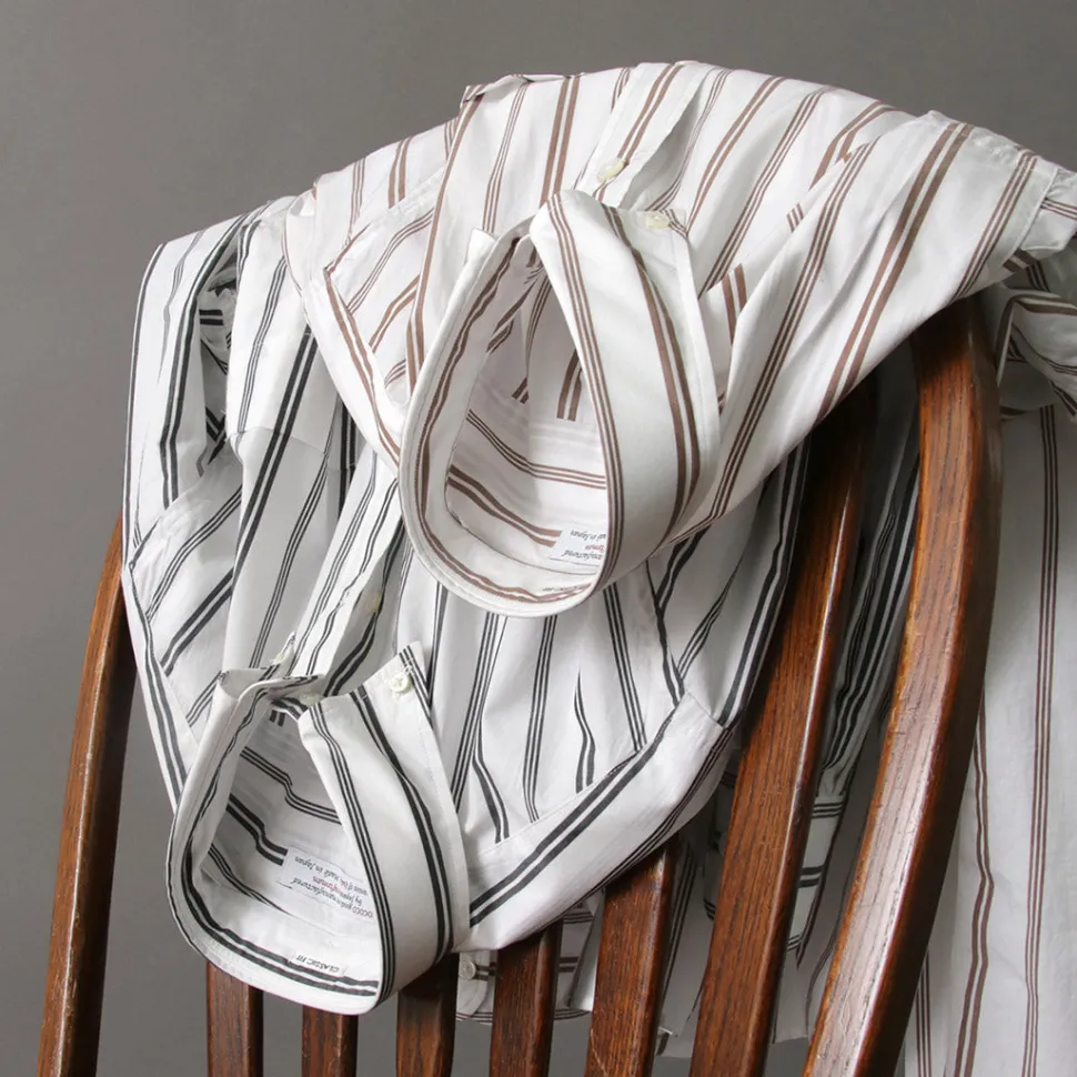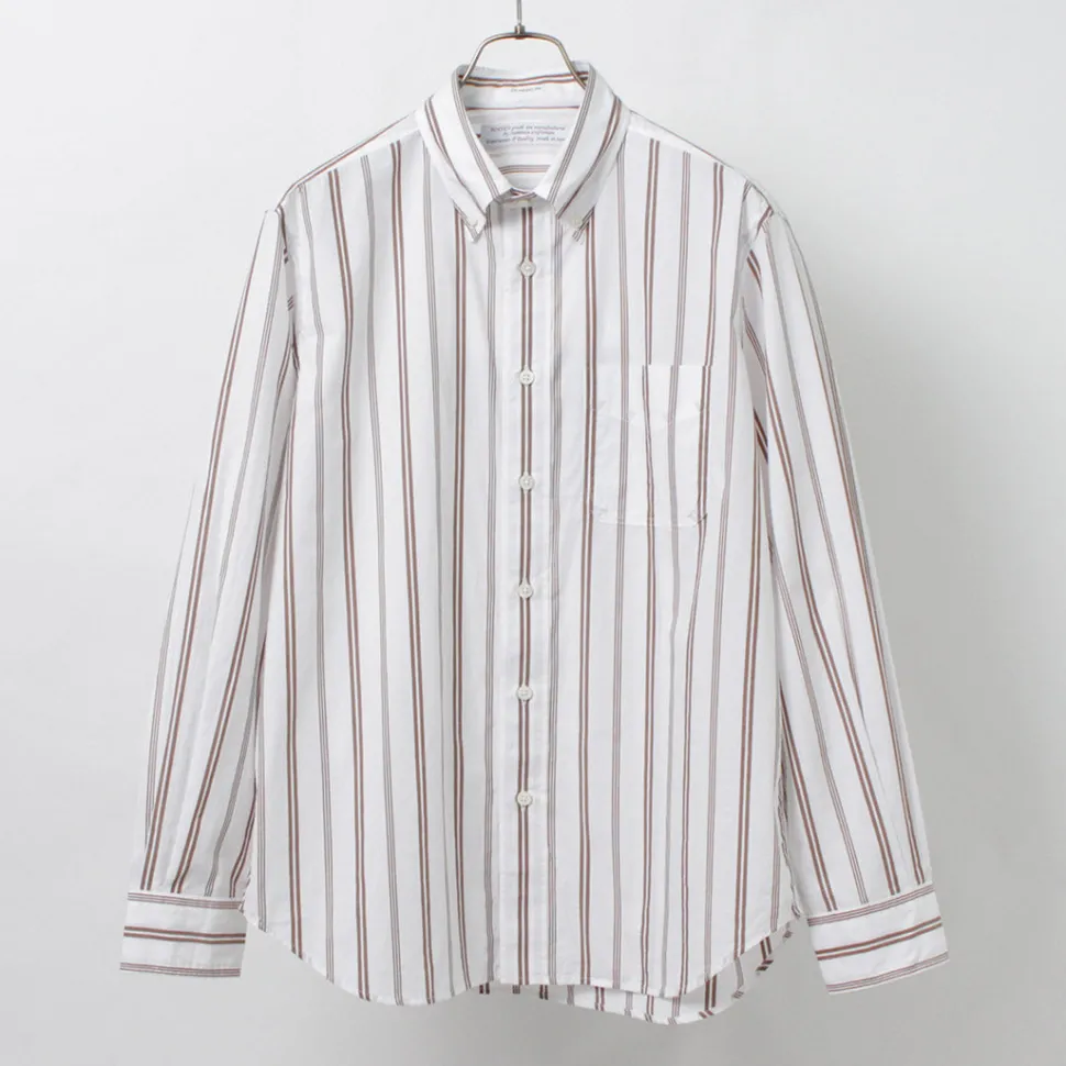 This shirt is made of 100% Supima cotton, which is characterized by its soft texture and firmness. The pattern is a random stripe that is not too assertive, making it an item that can be used as an inner layer for a jacket or as a mainstay of a coordinate with just one piece in spring.
