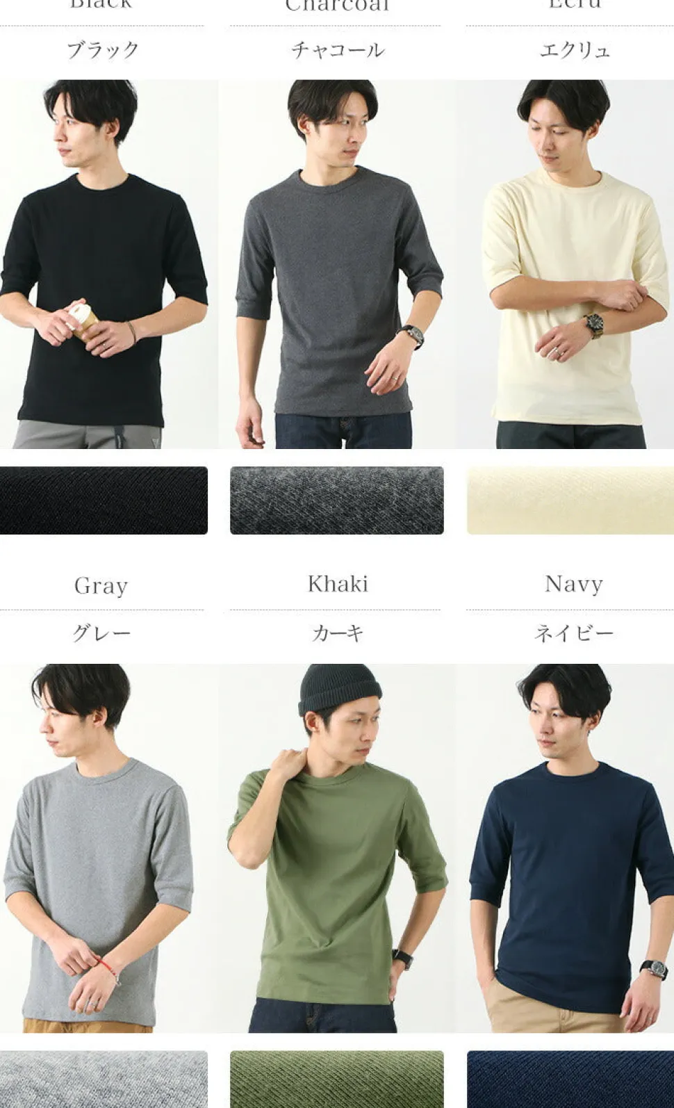 This crew neck t-shirt has a high elasticity and fits well to the body. The wide ribbing on the sleeves, typical of military underwear, gives this t-shirt a classic look that can be worn on its own or layered with other items or as an inner layer for autumn and winter. Made in France There are many famous cut and sew brands such as ORCIVAL and PETIT BATEAU in France, and there are many high quality sewing factories. ROCOCO’s cut-and-sew items are produced with such background. The sewing of this item is done carefully at the factory which has undertaken famous brands such as QUOTIDIEN.