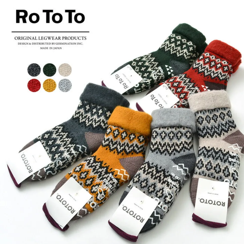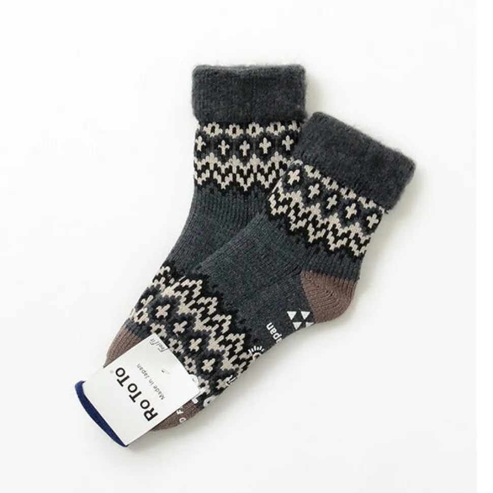 Low-gauge room socks with a thicker wall thickness, developed using knitting machines that knit a variety of work socks, including fisherman’s socks.