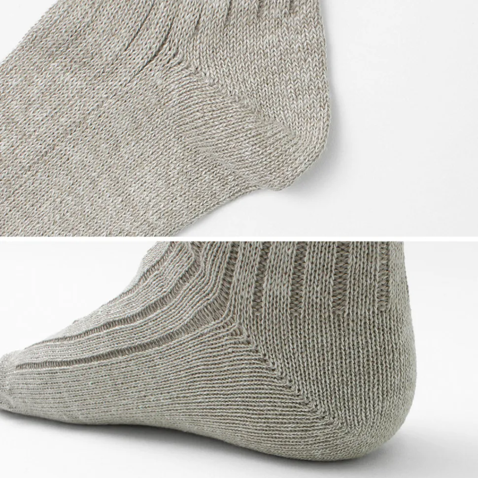 The inner cotton absorbs perspiration and dampness, while the linen knitted on the outside dissipates perspiration, dampness, and heat. These socks are made with natural fibers that provide functionality and an excellent sense of coolness.