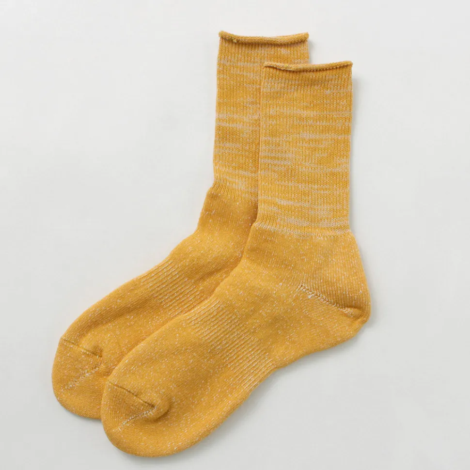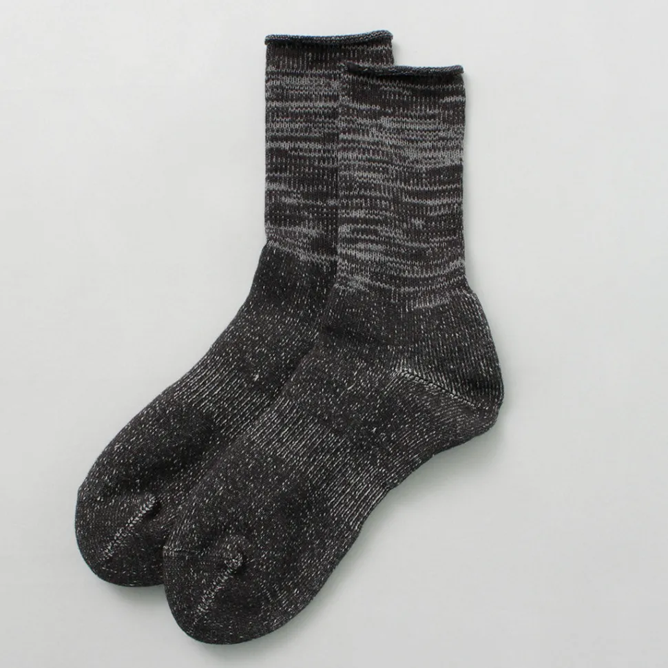 These socks have a unique crisp feel, created by knitting Japanese paper yarn into a pile. It is difficult to pile knit resilient Japanese paper yarns on ordinary knitting machines, but the special knitting machine and excellent Japanese craftsmanship make these socks a special pair that no one else in the world can imitate.