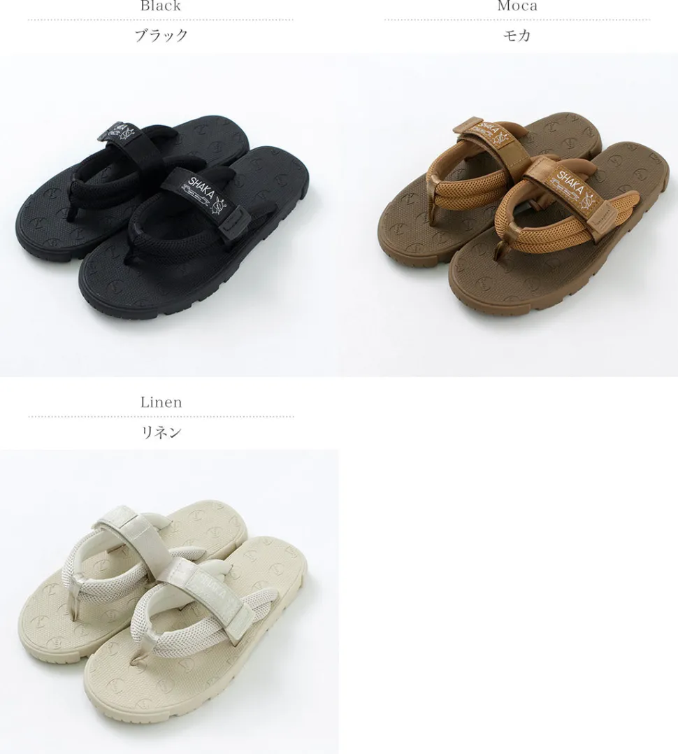The SHAKA sandal features a thong design with an instep strap for an improved fit. The thin yet highly cushioned BF SOLE supports a comfortable walk.