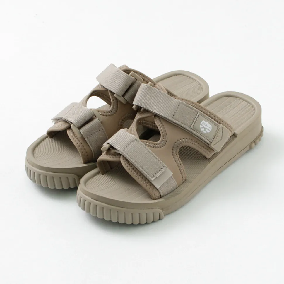 The two straps on the instep provide a secure fit that conforms to the foot, making it very easy to walk in spite of the sliding type without a heel strap.