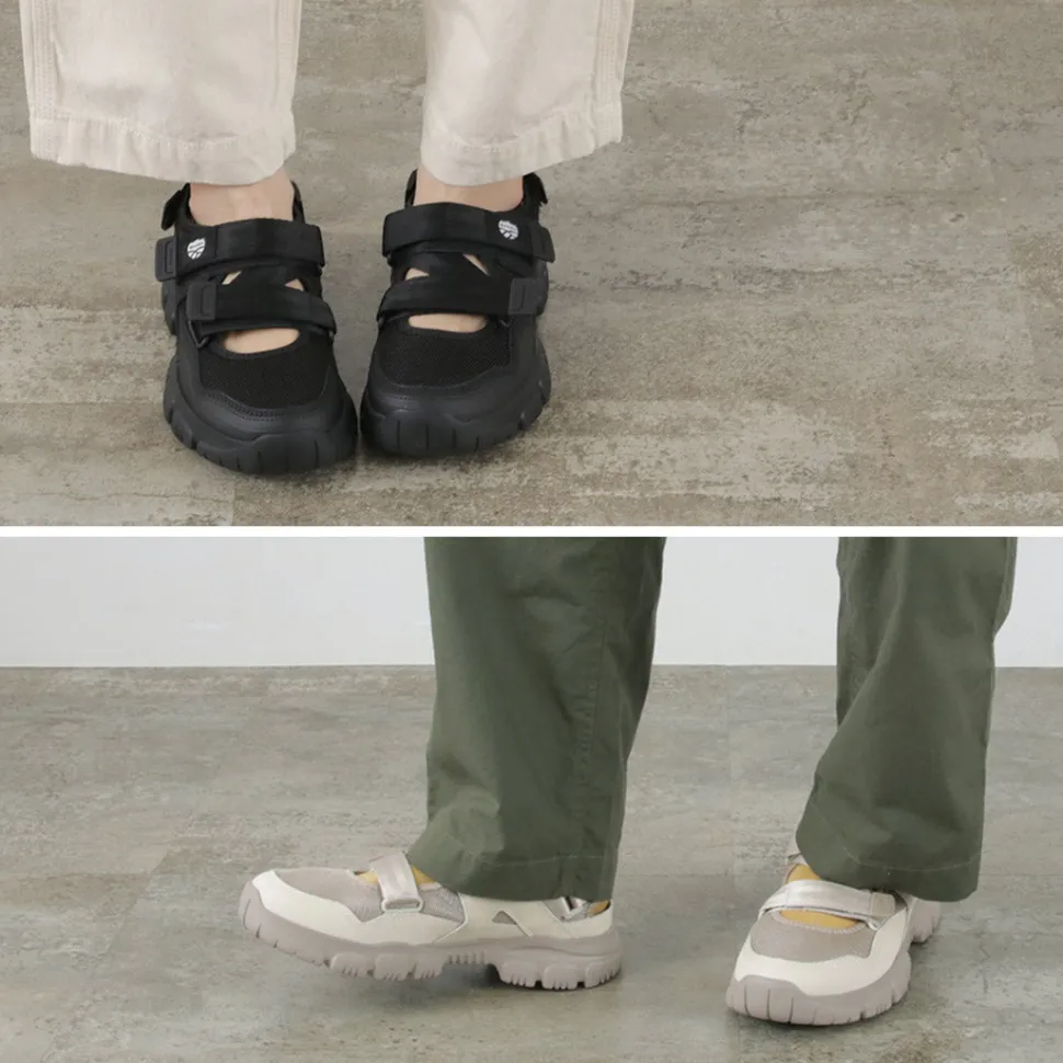 The upper is made of breathable mesh material. The Velcro adjuster, which allows you to freely adjust the fit, not only looks unique, but also holds the instep firmly in place and provides a stable and comfortable fit.