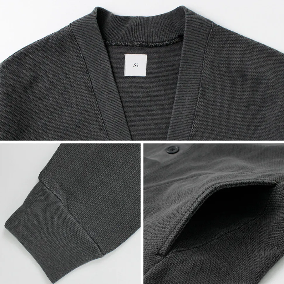The original fabric knitted with open-ended yarn is used. It is characterized by a dry feel against the skin and can be worn comfortably even during the sweaty season. The moderate thickness of the fabric allows it to be worn for a long season.