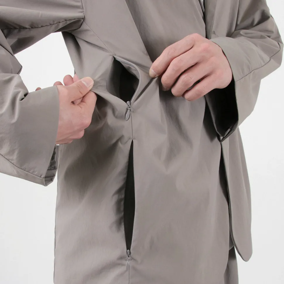 The fabric is made of a high-functional material supervised by the Italian company LIMONTA, which is said to be the world’s highest peak in synthetic fiber outerwear. The crisp, cotton-like feel on the skin is appealing, and the matte luster gives it an elegant look.