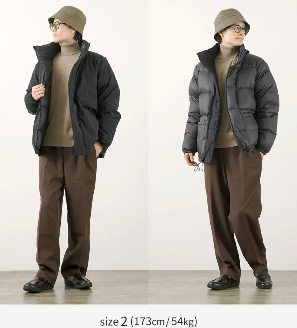 This reversible down jacket is the result of a collaboration between TAION and SI. With high warmth retention using 800 fill power down and water-repellent fabric, this jacket is suitable for a wide range of situations from daily use to outdoor activities.
