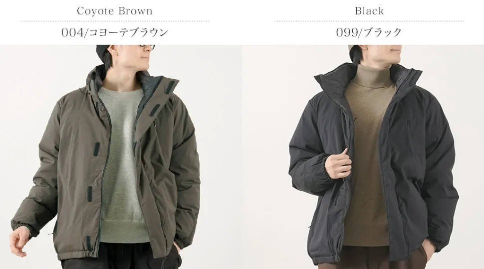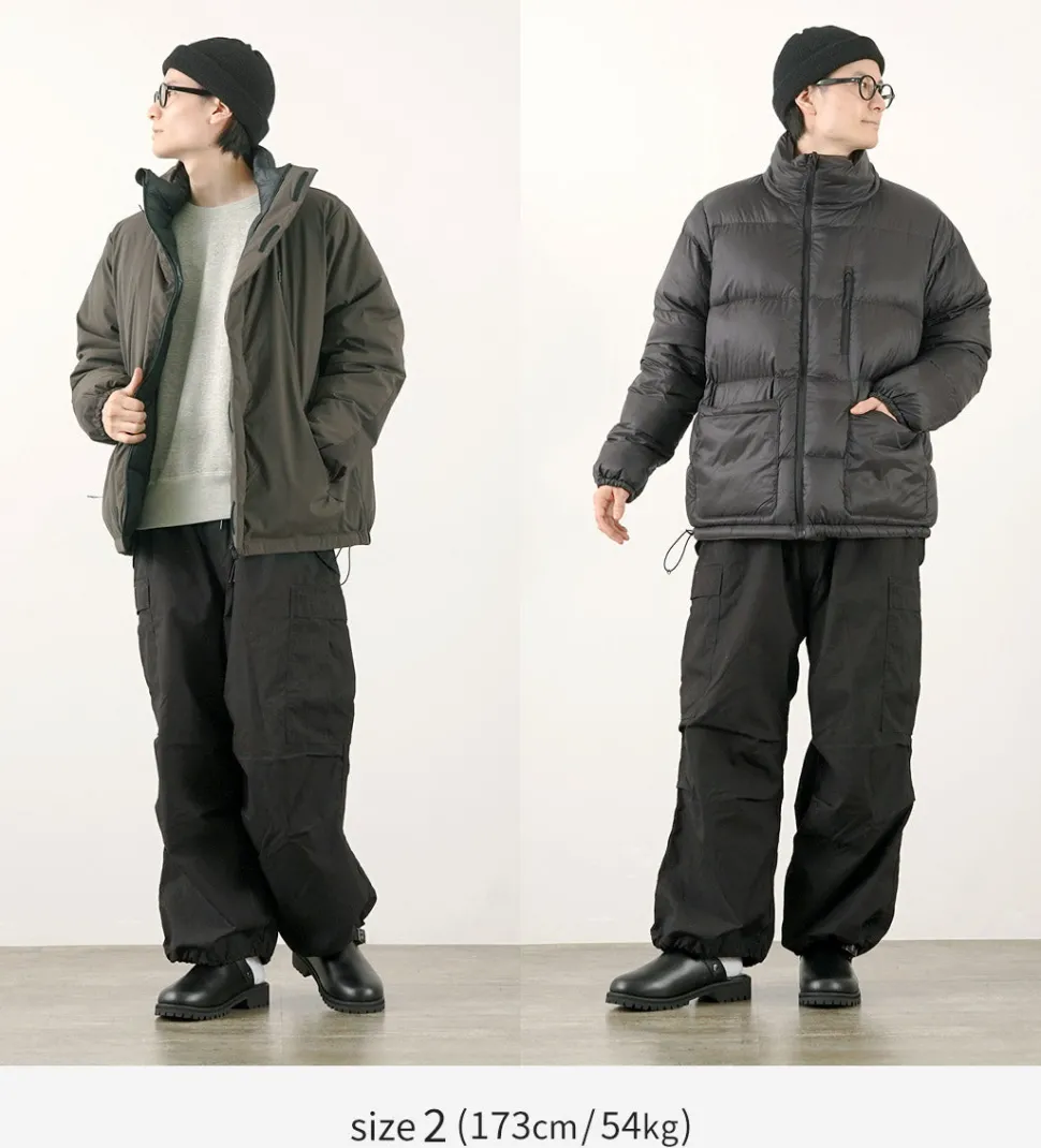 With high warmth retention using 800 fill power down and water repellent fabric, this jacket is suitable for a wide range of situations from daily use to outdoor activities. The reversible design, featuring one side with a matte military taste and the other side with a glossy finish, further expands the range of styling options.