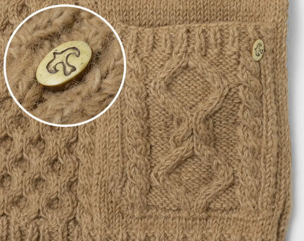This knit vest features the traditional knitting pattern of the Aran Islands. The contrasting unevenness creates a beautiful expression.
