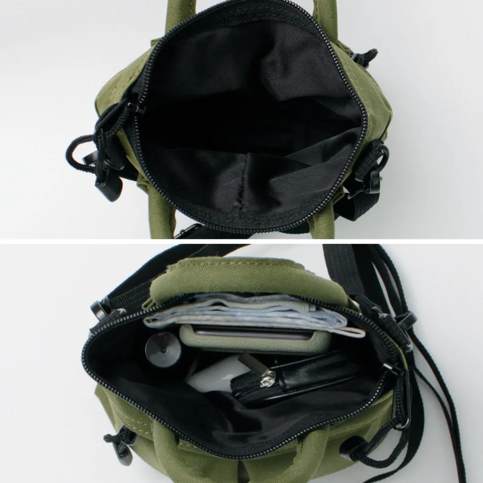 The main compartment has a zipper opening. With its cute size that can just about fit essentials like a smartphone, mini wallet, and key case, it’s perfect for quick outings or for children. Additionally, it can be used as both a bag and a pouch.
