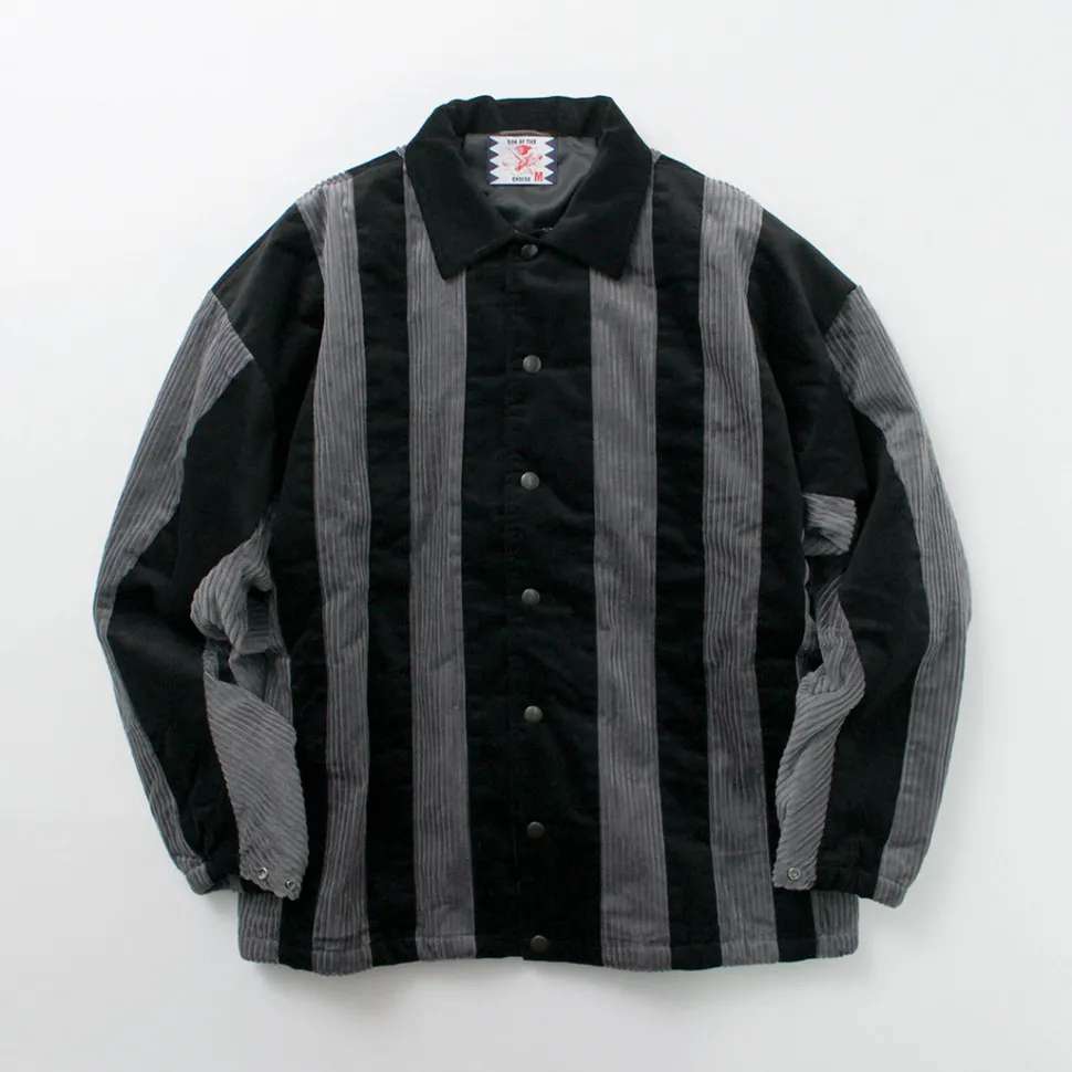 SON OF THE CHEESE introduces a cotton-filled coach jacket with stripes of corduroy fabric.