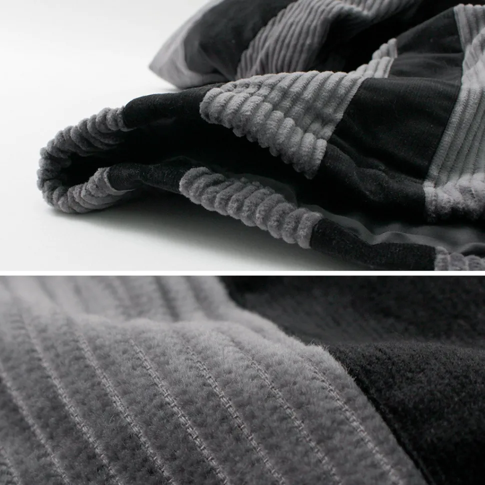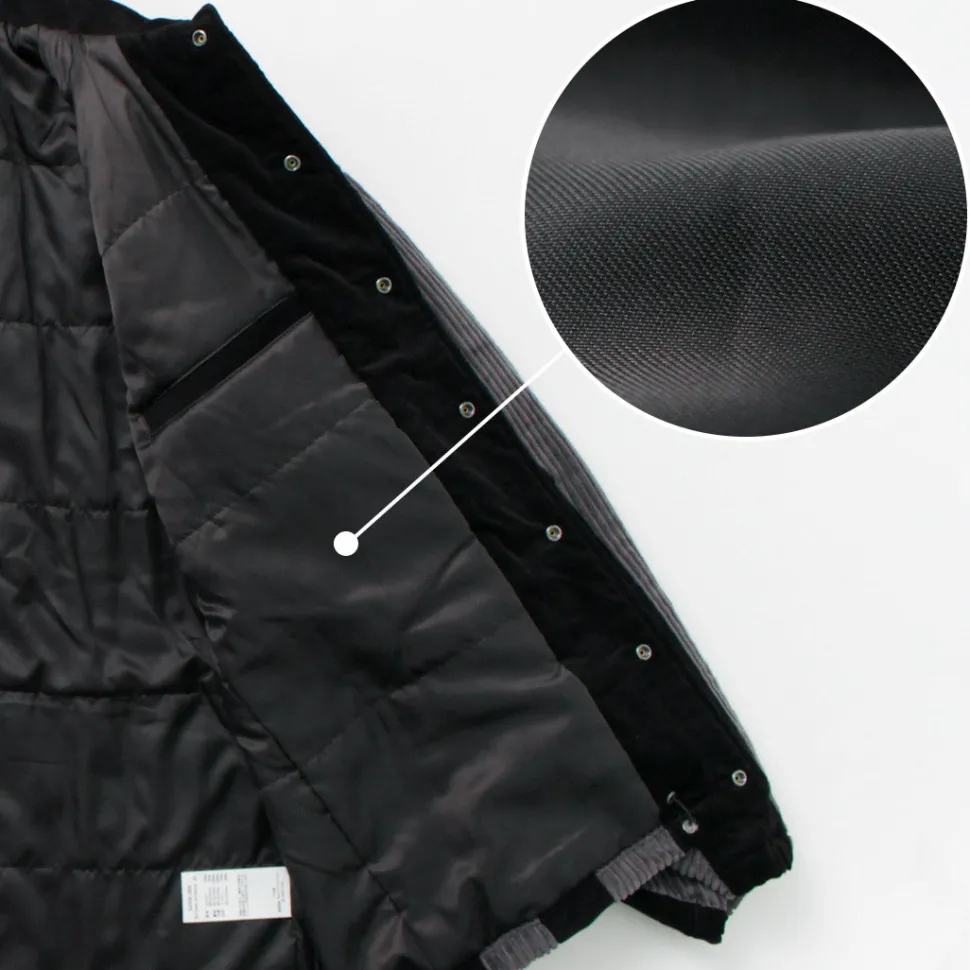 The outer fabric features corduroy fabrics with different pitches, creating a textured appearance with a contrasting texture.