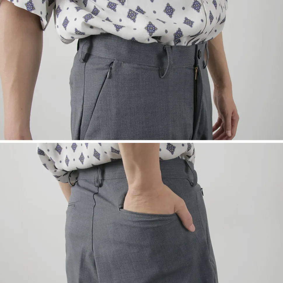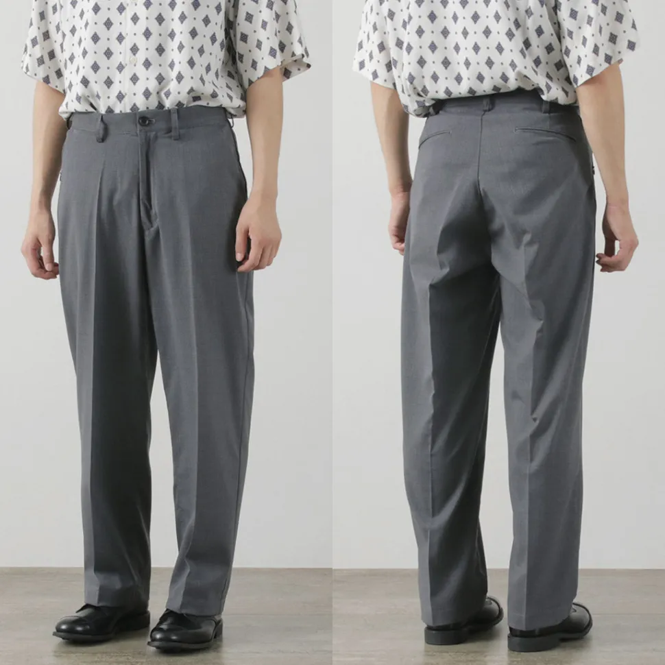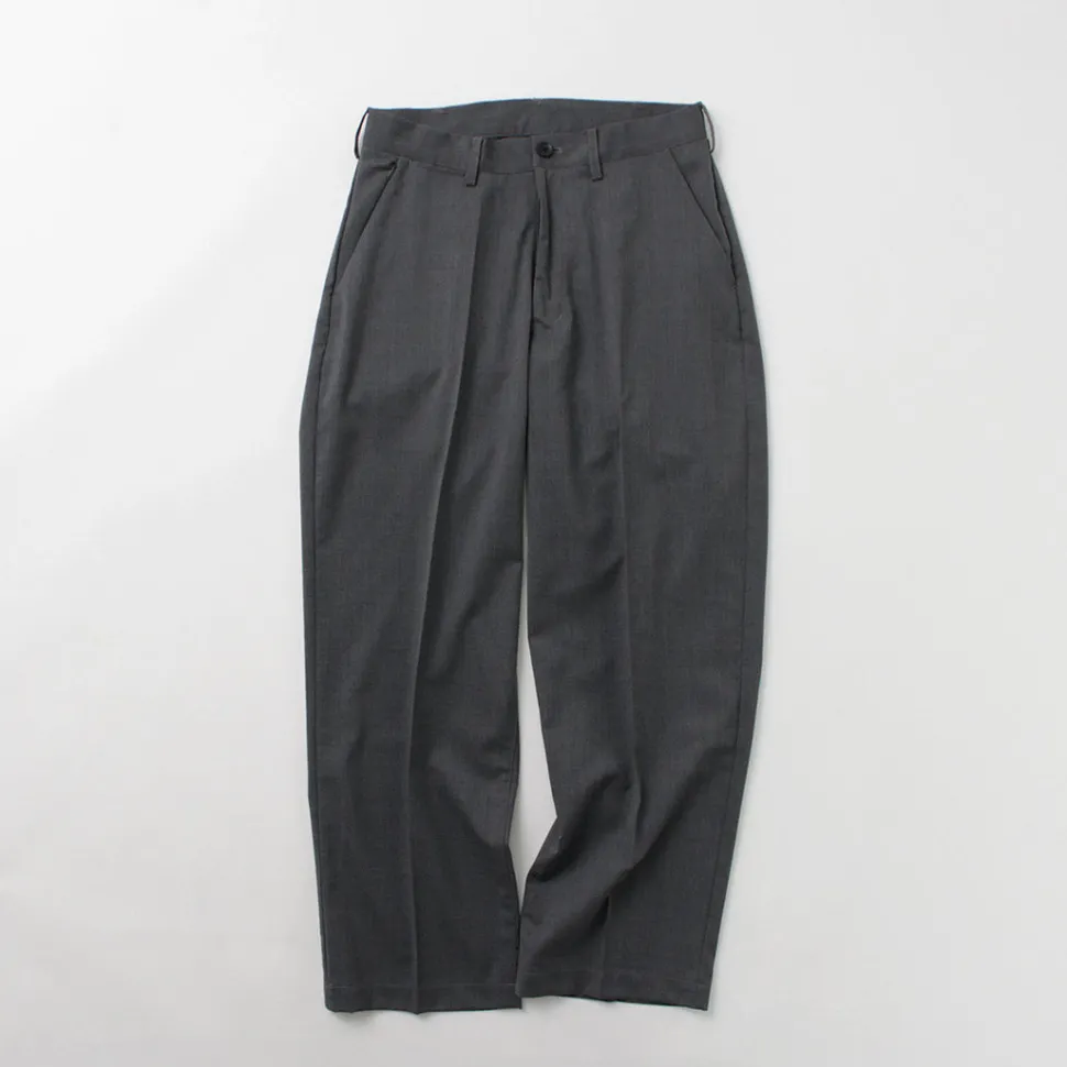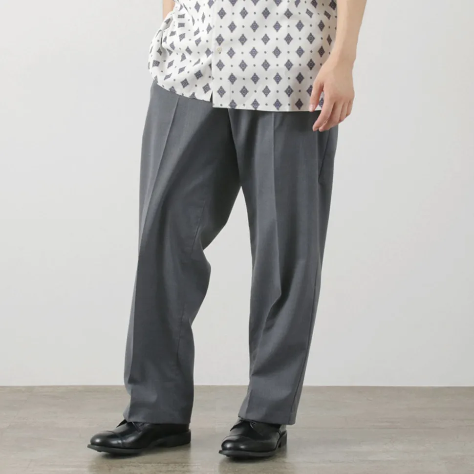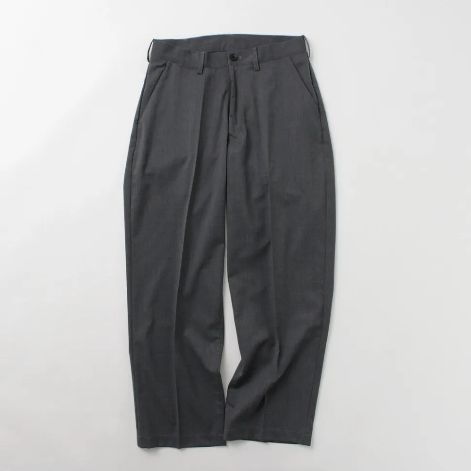 Designed as wide pants with room in the waist, hips, and thighs. Tapering gently towards the hem creates a neat silhouette without looking loose. Enjoy the relaxed fit while maintaining sophistication, ideal for adult pants.