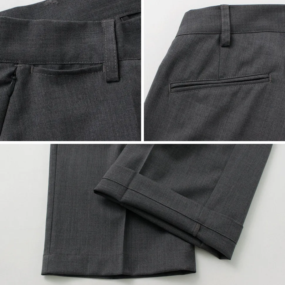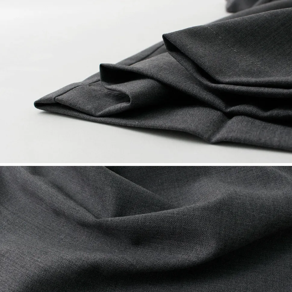 It also has an attractive light luster and smooth thickening. Combined with the straight center pleat, it is an elegant and mature piece with a casual silhouette.