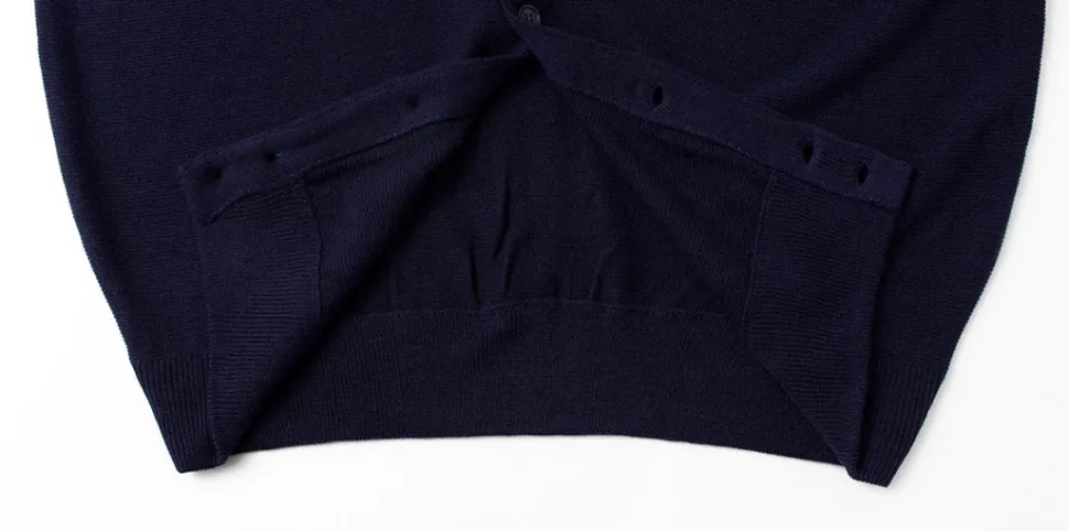 The material used is high-twisted acrylic yarn. It feels great on the skin, and its softness and comfort are addictive. Lightweight, quick-drying, easy-care and washable at home, this cardigan is perfect for daily use with its diverse features.