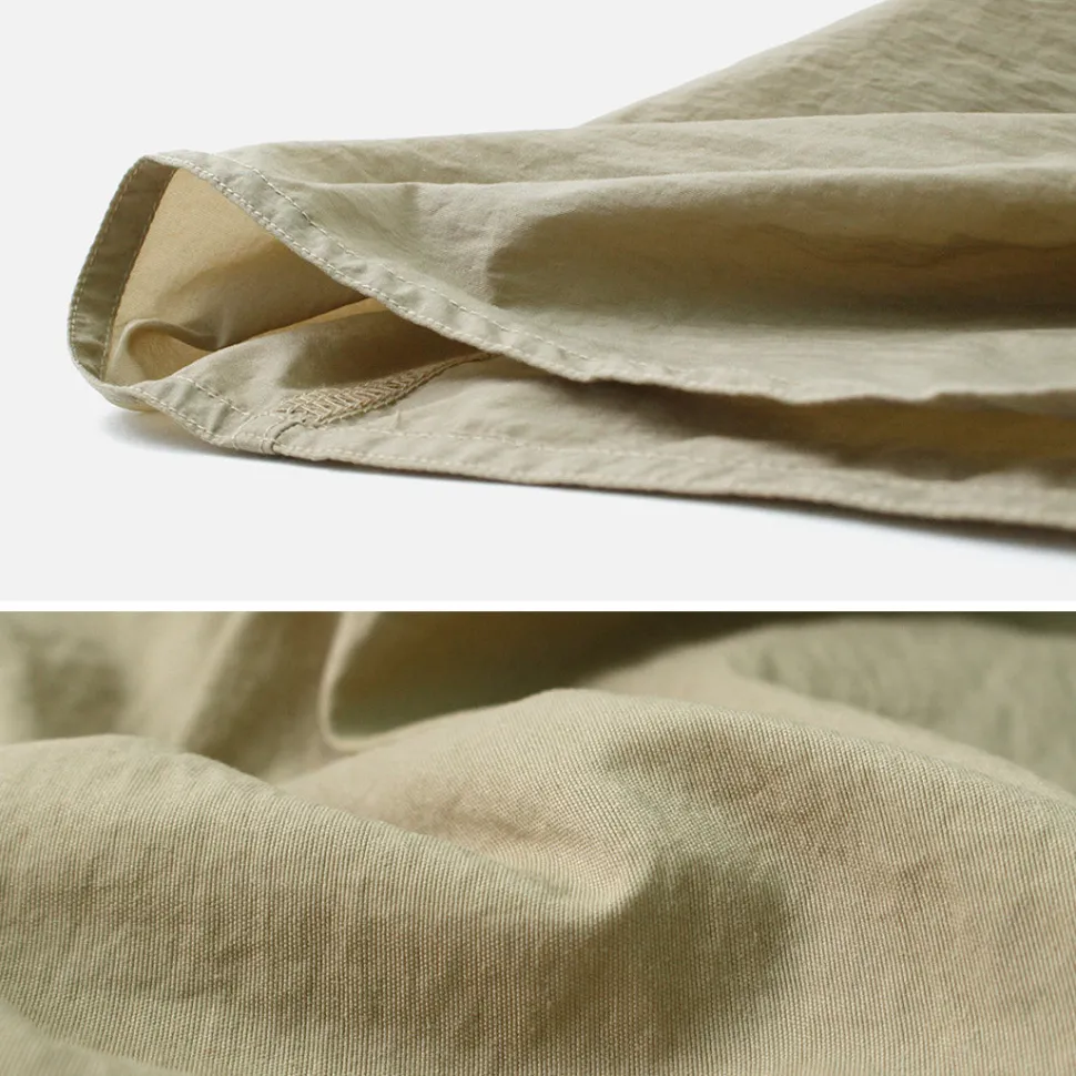 The fabric is made from Supplex Nylon, a lightweight, fast-drying, highly functional material with excellent breathability. While boasting high abrasion resistance and durability, it is softer than regular nylon and has a natural texture with a cotton-like expression.