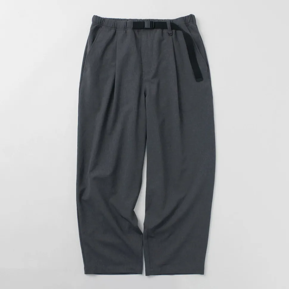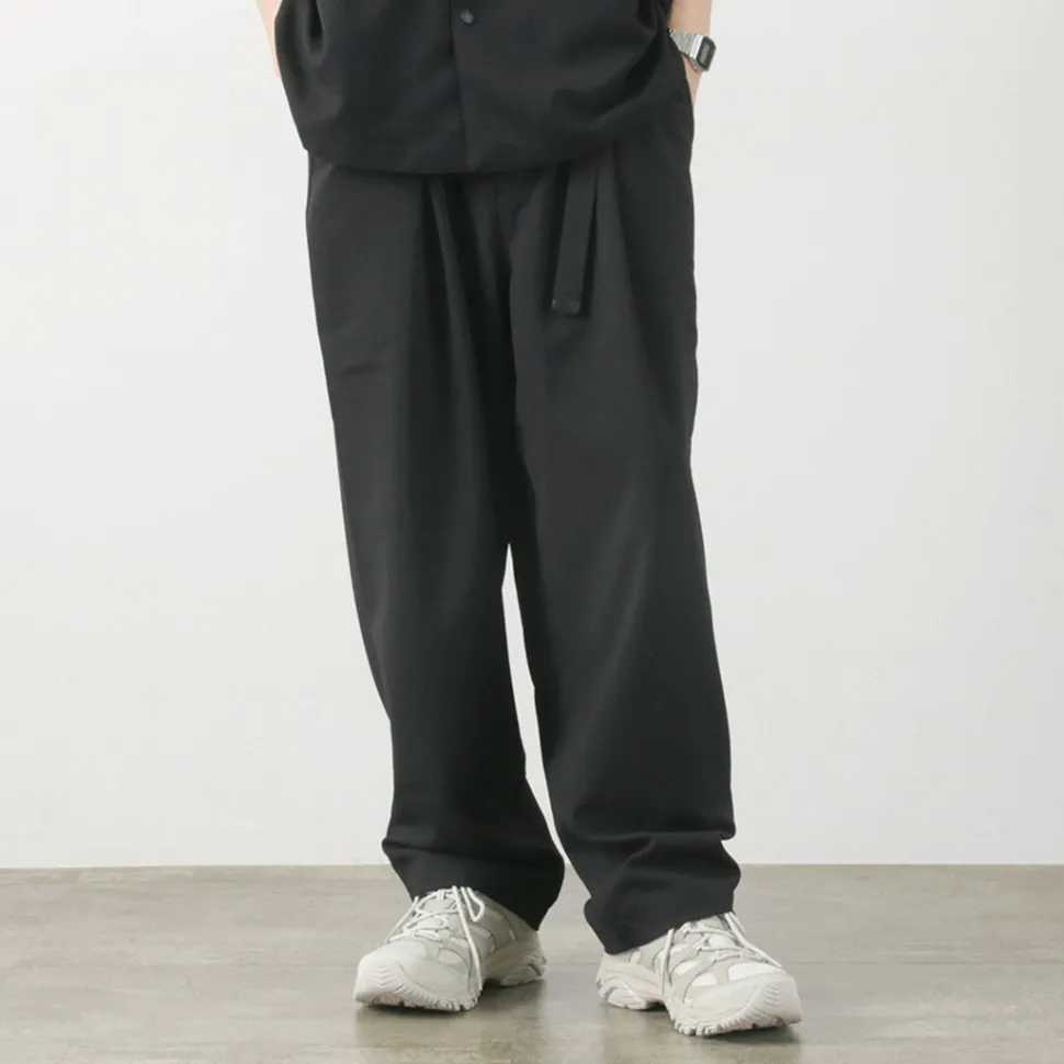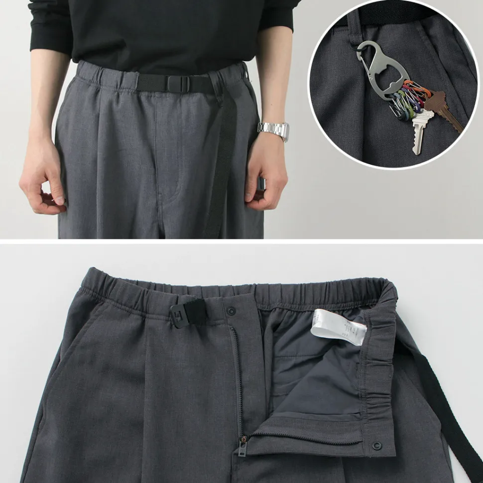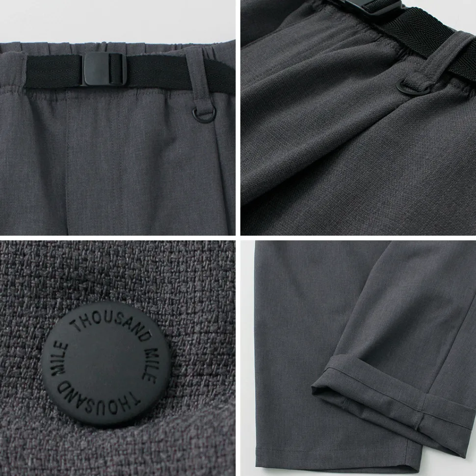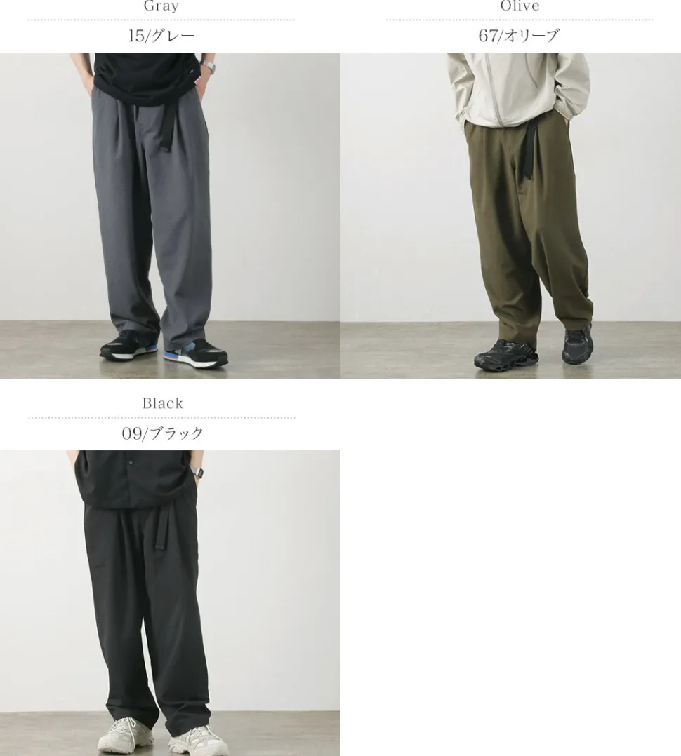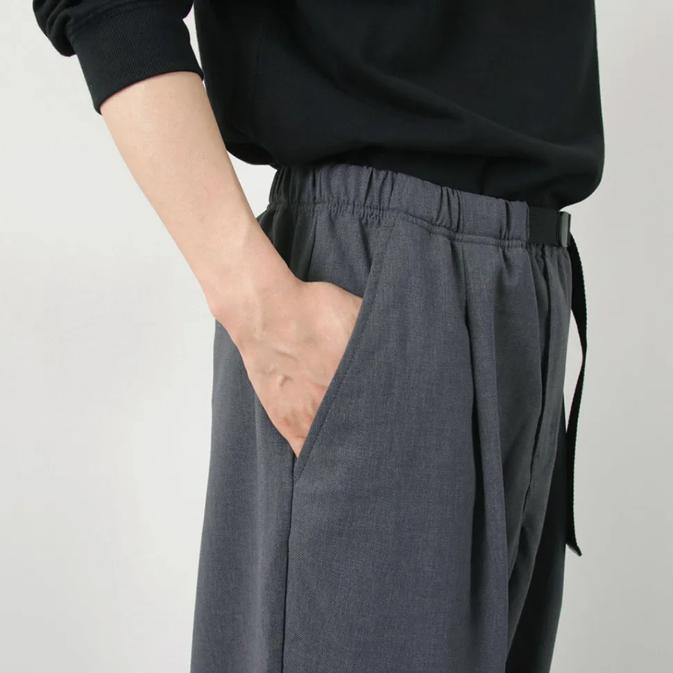 These easy pants have a crisp, dry hemp-like feel that is refreshing. The functional fabric with excellent air permeability and UV blocking functionality provides a comfortable fit even during the sweaty season.