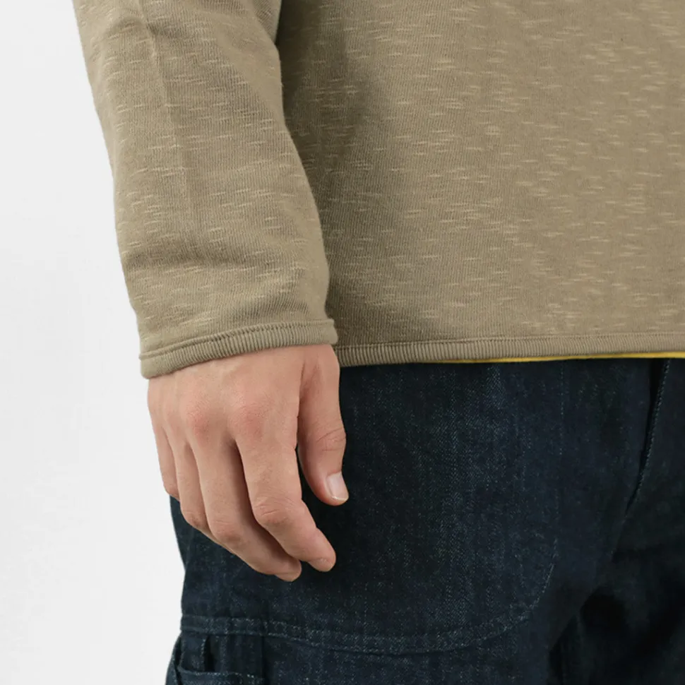 High-density knitting and slub yarns are drawn together to create a washed, uneven texture.The more you wear it, the more you will feel the change as it becomes more comfortable to wear.
