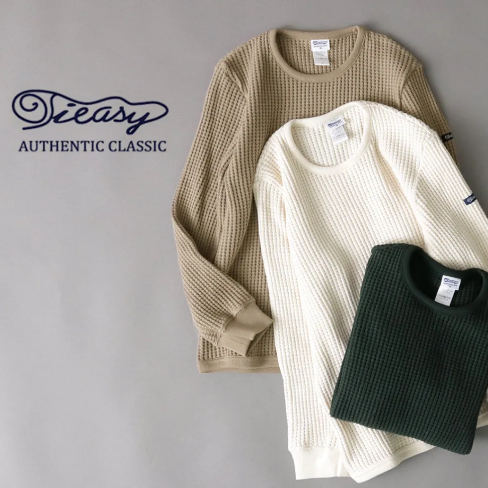 Introducing TIEASY’s Super Thermal Crew Neck T-shirt. As the name suggests, this cotton thermal fabric has volume and can be enjoyed as an inner layer in winter and as a single piece in spring and fall. This original thermal has high potential as a fashion item, combining the comfort of a sweatshirt with the feel of a knit.