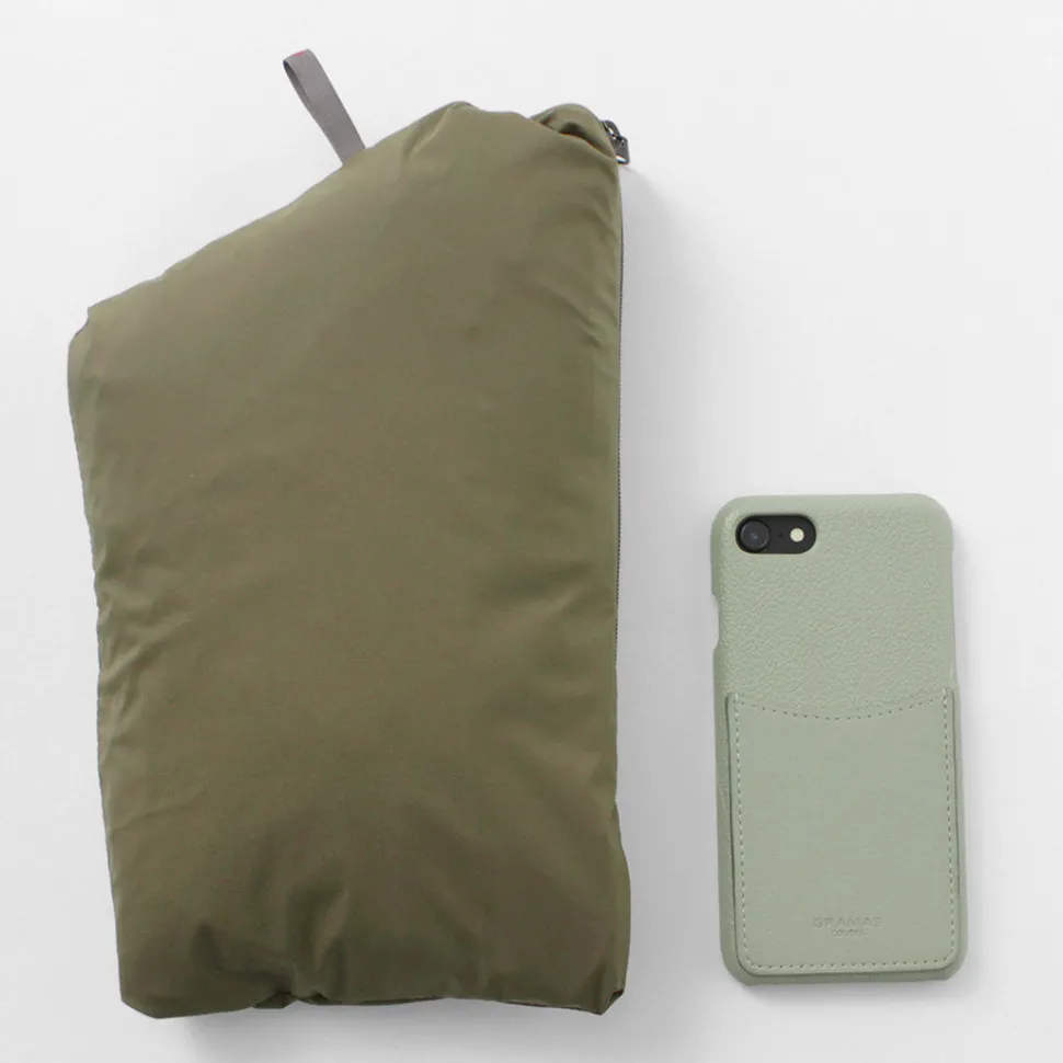 A thin, stretchy nylon fabric called “Craft Evo” is used. It has a water-repellent finish and can be used as a substitute for an umbrella in light rain. The silicone coating on the back of the fabric also makes it windproof.