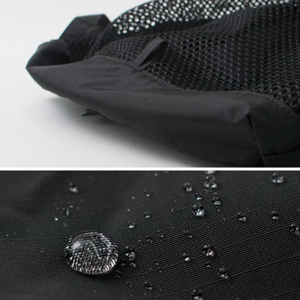 The fabric is made of durable and lightweight ripstop fabric and is water-repellent, so it is safe even on rainy days. Despite its simple design, the calculated design allows it to be used in a wide range of situations, including leisure activities and hiking, as well as town use.”