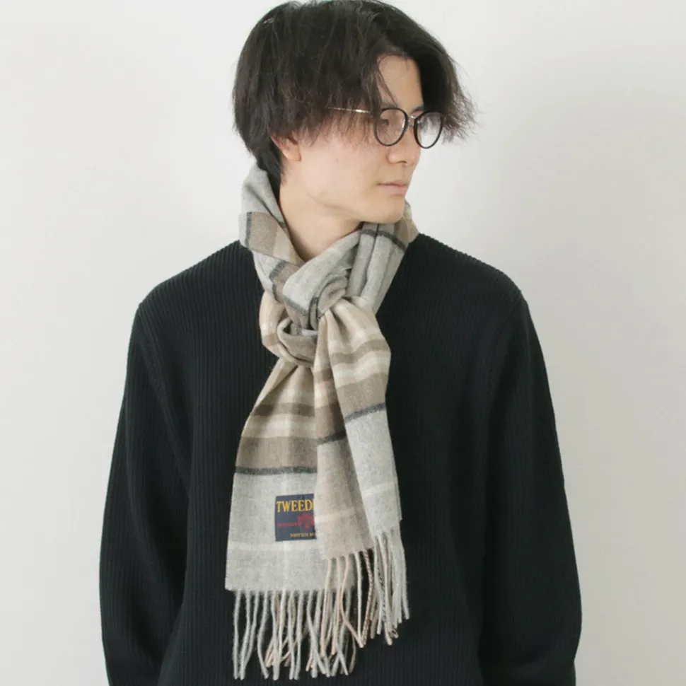 The richly colored check scarf adds a touch of color to simple coordinates. It is a luxurious piece that allows you to fully experience the rich charm of the historic tartan check.