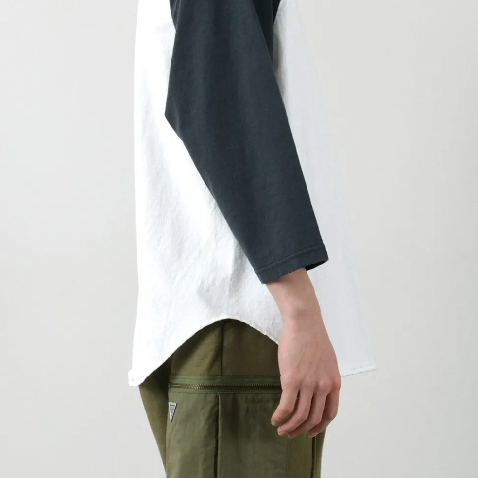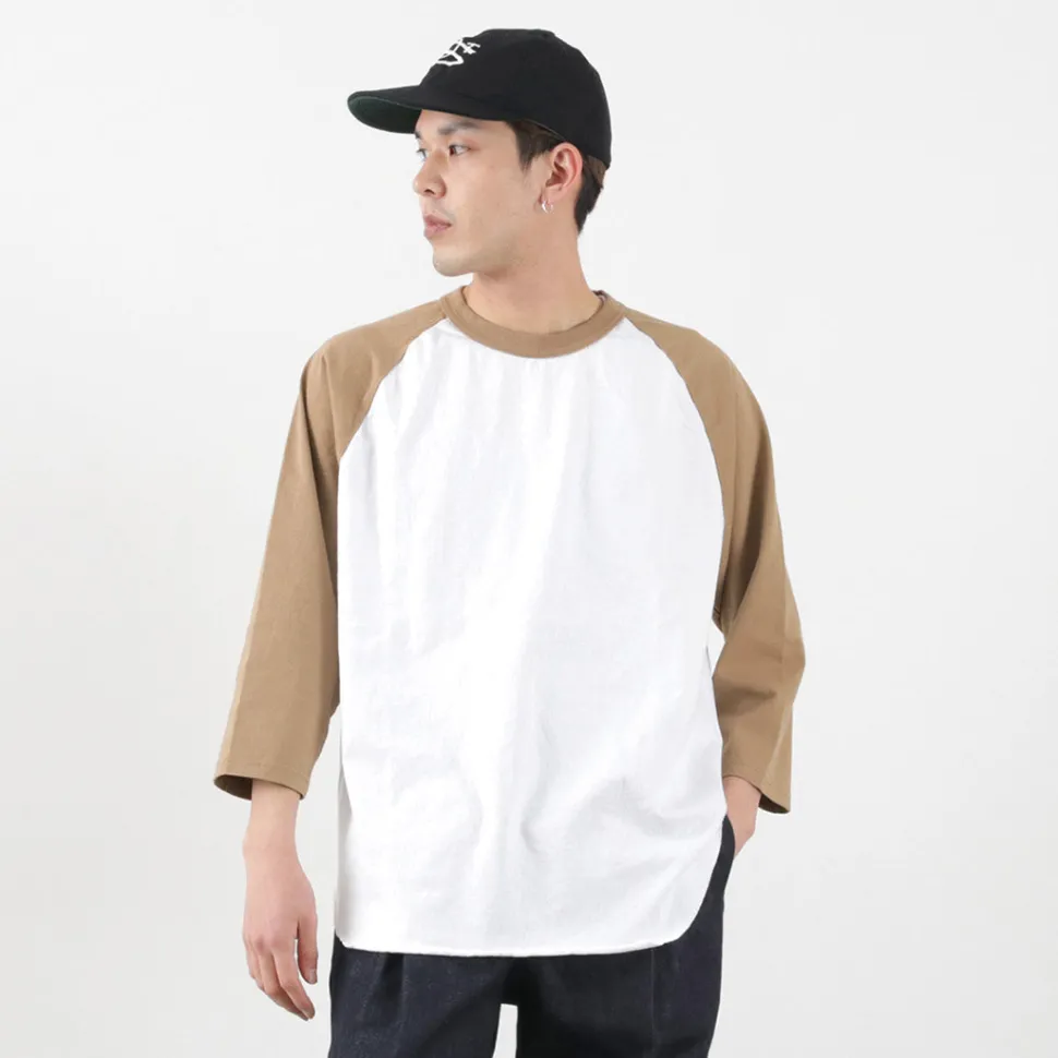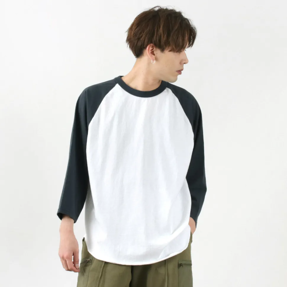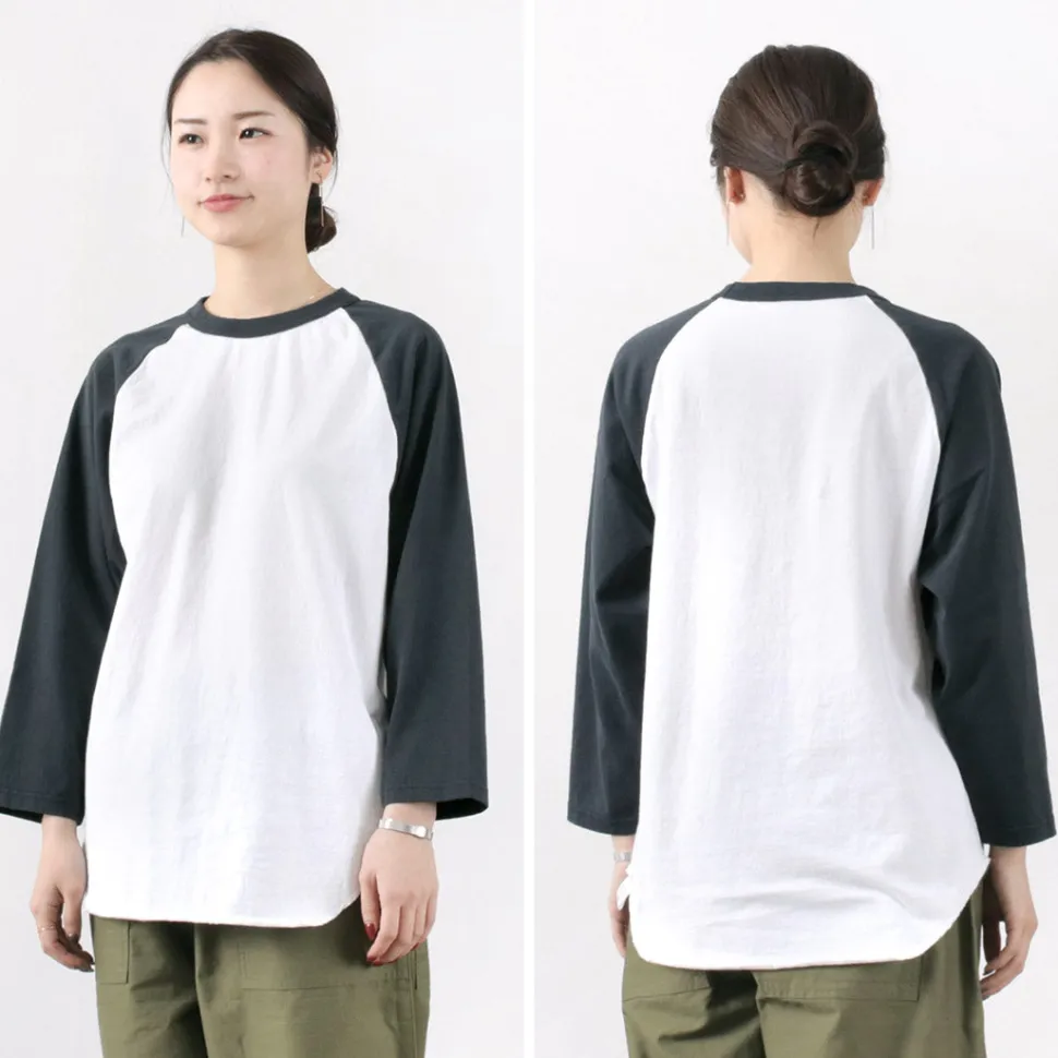 This baseball T-shirt is a WALLA WALLA SPORT masterpiece. The simplicity of the design makes it easy to wear, and the design makes it look great as a single piece. The fabric is made in the U.S.A. and sewn in Japan, making it both rough and durable. The wide range of sizes makes it suitable for both men and women.