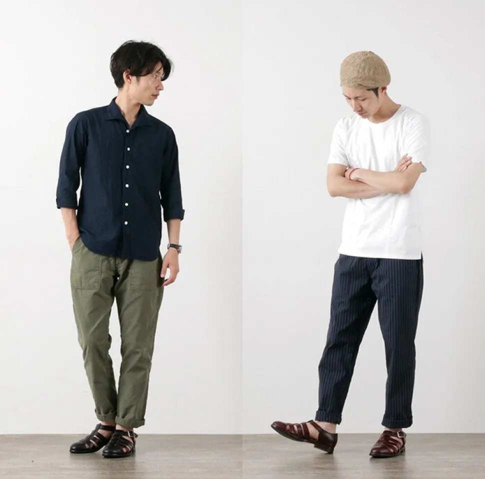 The Gurkha Sandal “WHEELROBE” is a shoe brand that was born in Japan in 2015, and is a special order only for ROCOCO. It reconstructs the universal design and traditional details of “good old America” with “Made in Japan”. The upper of the inline Gurkha sandal is changed to chrome-excel leather for a special Rococo special order model. The leather is thick and does not easily lose its shape, but it is very comfortable and can be used for a long time. The usual leather used for leather shoes is about 1mm for business use, but this model uses 2.2mm leather. This model is made of 2.2mm leather, which is thick and strong enough to keep its shape even after a long time of use. The adjuster belt can be adjusted in three levels. The inner sole is cushioned to reduce foot fatigue. In addition, the outsole is covered with half rubber to prevent slipping and to protect the outsole.