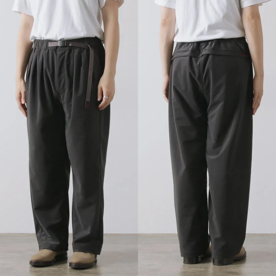 The tricot fabric gives the pants a corduroy-like appearance, and the three-tuck design gives them a roomy feel that is sure to become addictive once you try them on.
