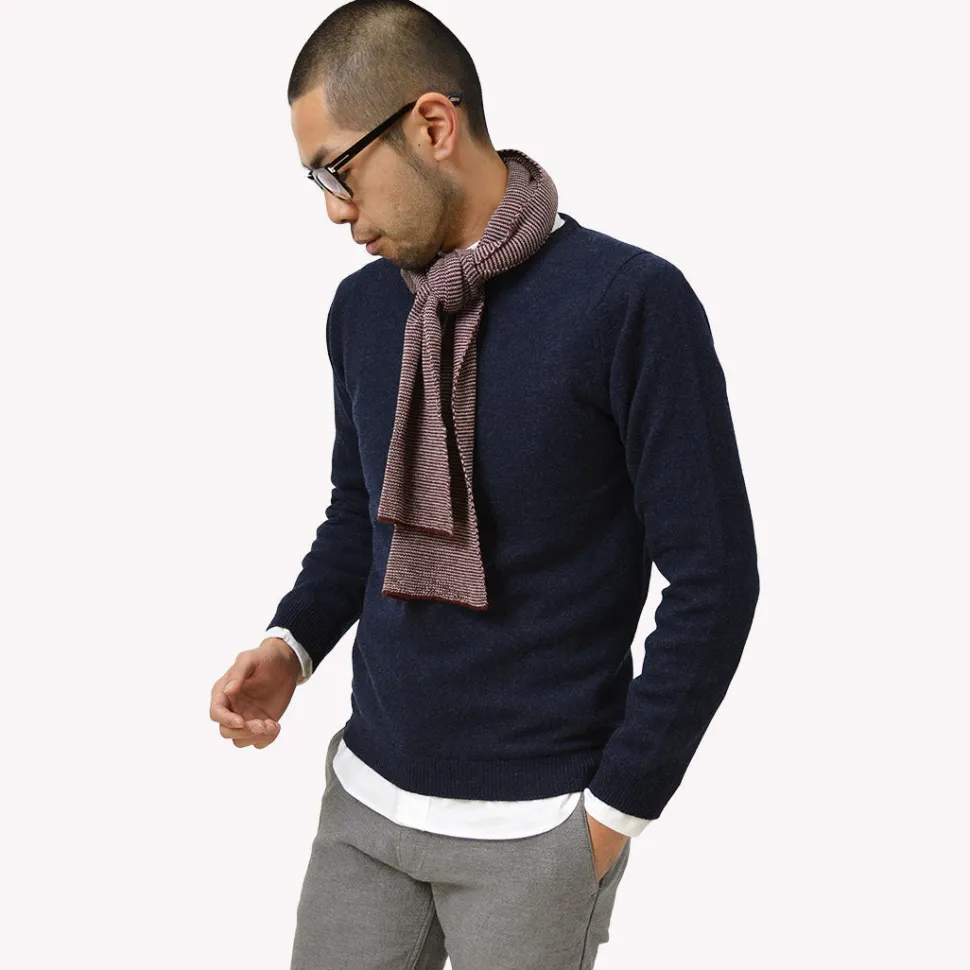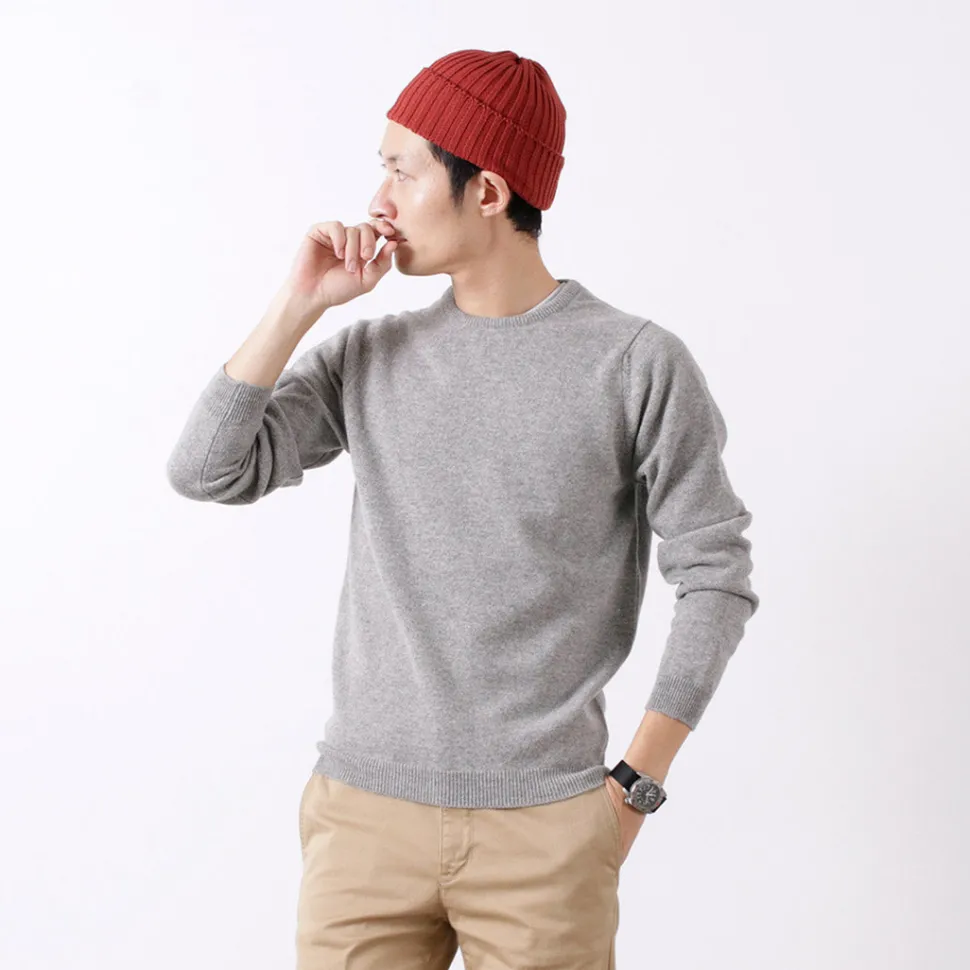 This crew-neck knit is made of 100% lamb’s wool by long-established knitwear manufacturer WILLIAM LOCKIE. Knitted with lamb’s wool, the knit is extremely soft and has a high-quality, elegant look. The high quality combined with the basic design has been loved for many years.
