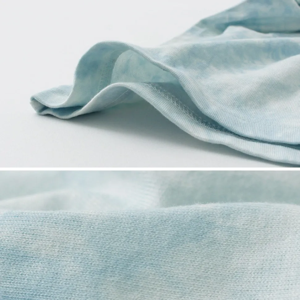 Hand-dyed using indigo dyeing techniques, the Yonetomi classic knit collar T-shirt is transformed. Featuring a delicate gradient from light blue to off-white achieved through a traditional tie dyeing technique called Murakumo-dye (cloud pattern dyeing).