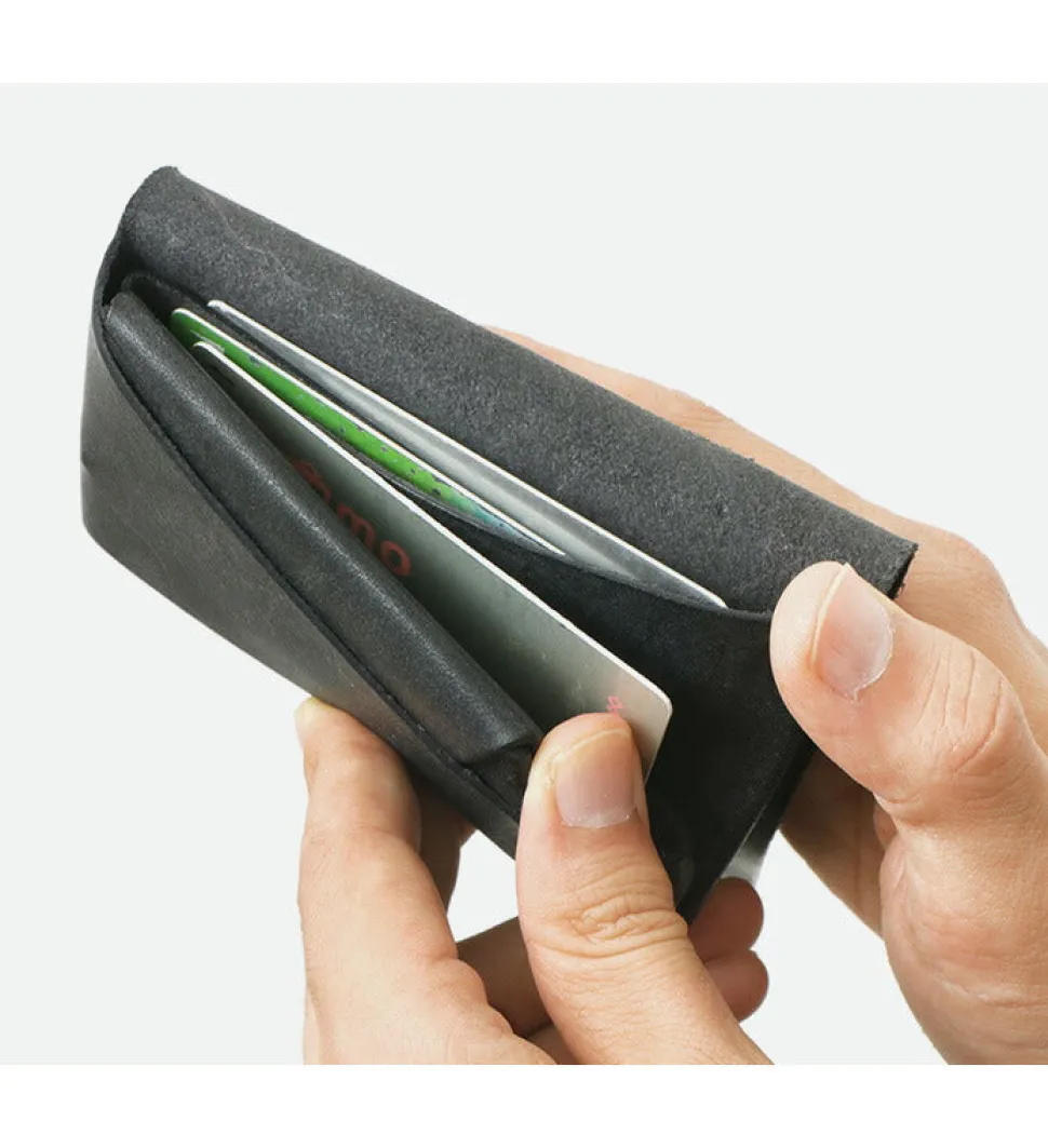 The minimalist construction, in which a single piece of leather is folded without sewing to create the shape, and only one point is fastened, is a key point. The size is just right for those who are paying cashless more often and no longer carry large wallets.