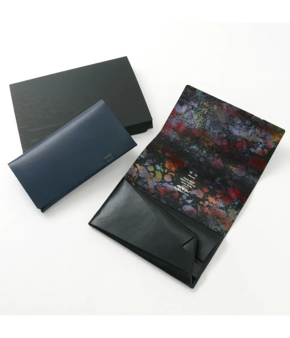 This minimalist long wallet is formed by folding a single piece of leather without sewing and fastening it at a single point. The clean appearance of the cover, which wraps around the body, and the design that reveals a foil-stamped pattern inside when opened, is gorgeous yet elegant, and can be enjoyed by both men and women.