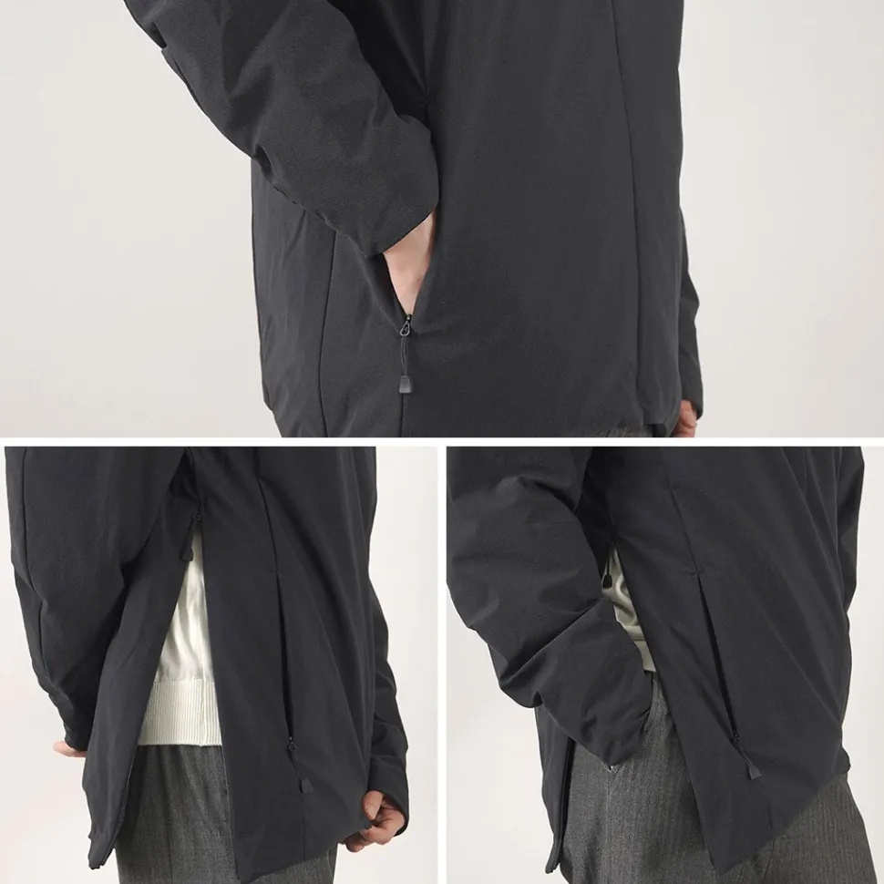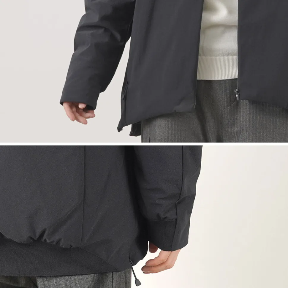 To prevent the ribs from being seen from the front, the cuffs are placed on the inside and the hem is ribbed only on the back. While the minimalistic look is important, the practicality of the garment is also unquestionable, such as the prevention of outside air from entering through the cuffs and hem.