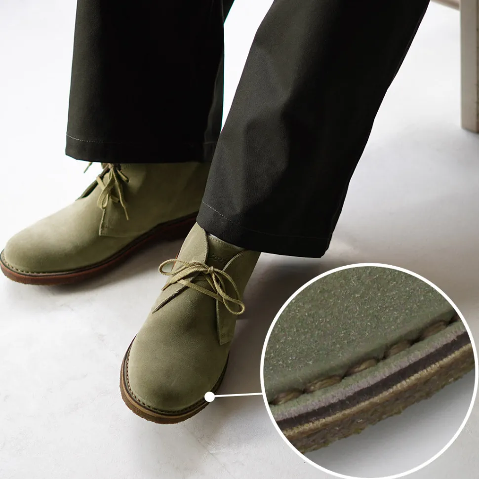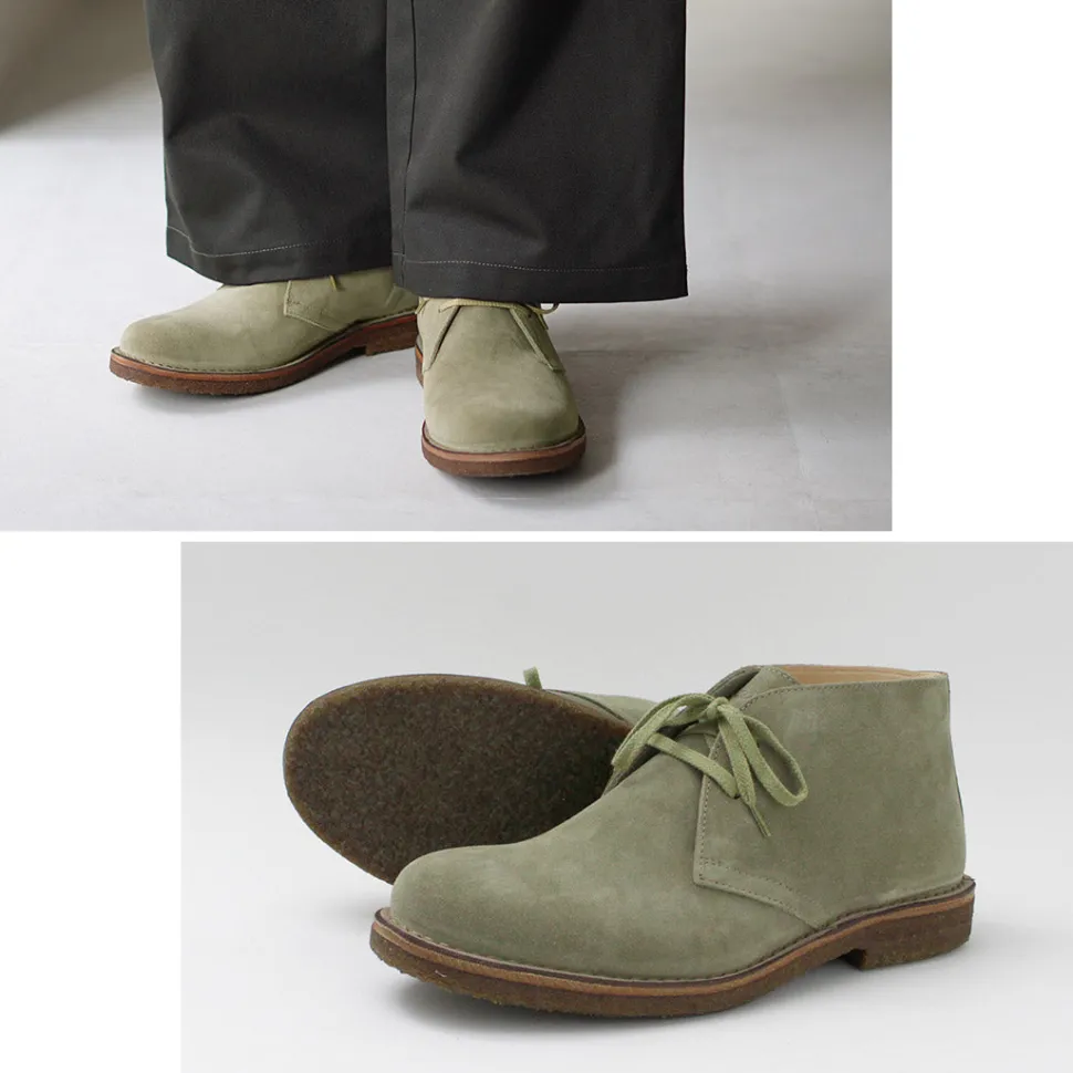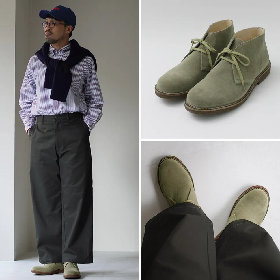 These desert boots originated in England, but the dignified atmosphere unique to Italian manufacture makes them an appealing item. It is finished to the gem that is active not only in casual style but also as an accent of jacket & pants style.