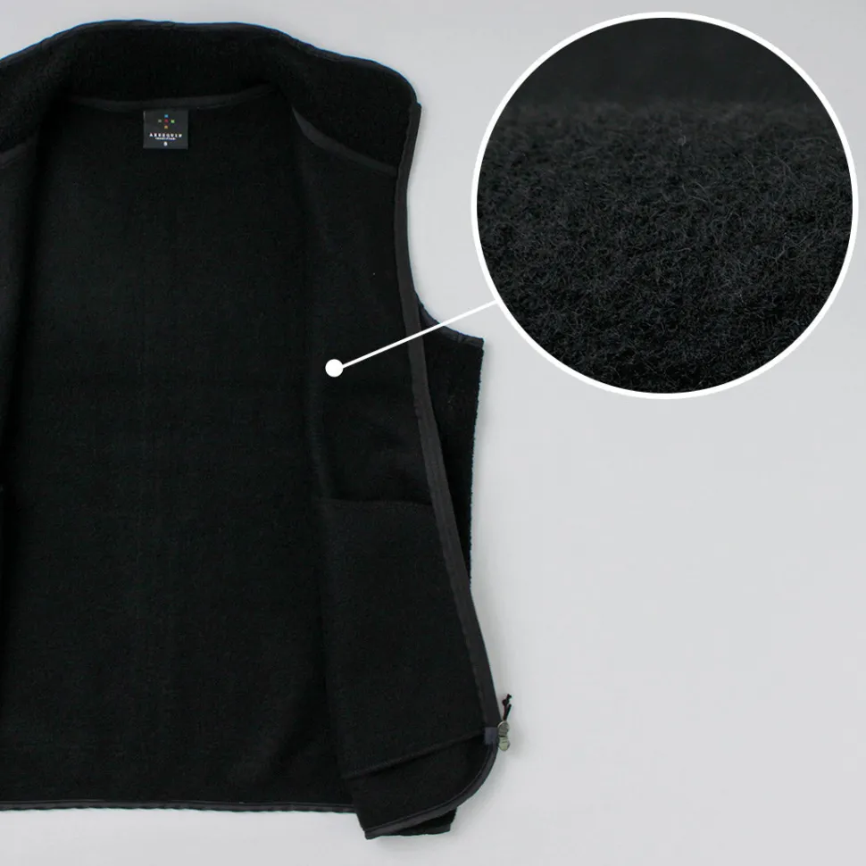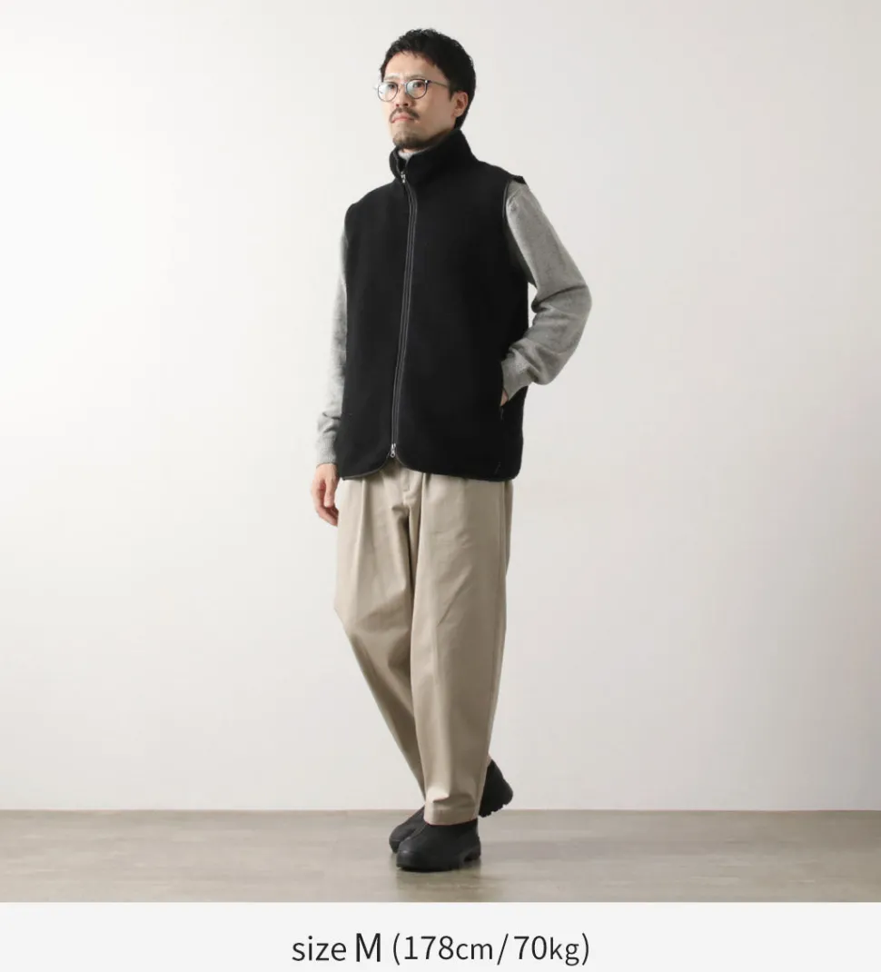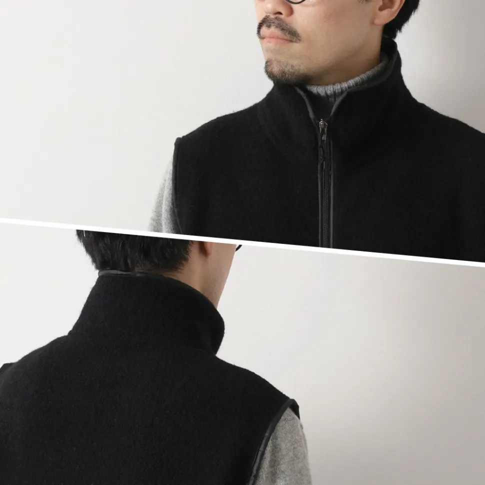This is an introduction to a zip-up vest made from “Techno Wool”, a functional material made by the Italian fabric manufacturer Pontetorto.