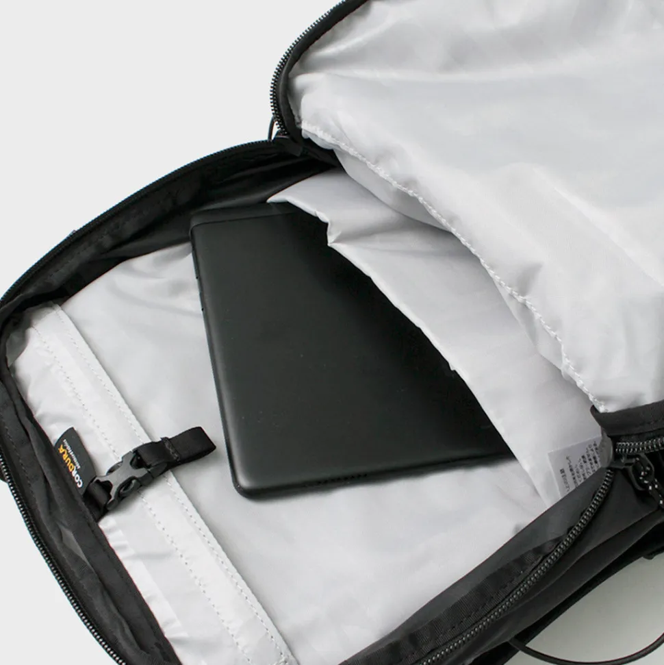 The bag is made of water-repellent Cordura fabric and is lightweight. The minimalist design is also notable for the functional and authentic details incorporated into the bag.