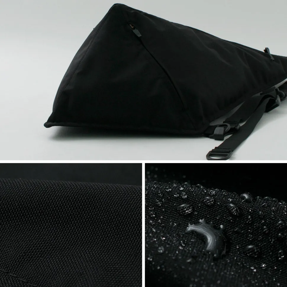 It has a symmetrical minimalist design and is lightweight, durable, and highly functional with a water-repellent finish.