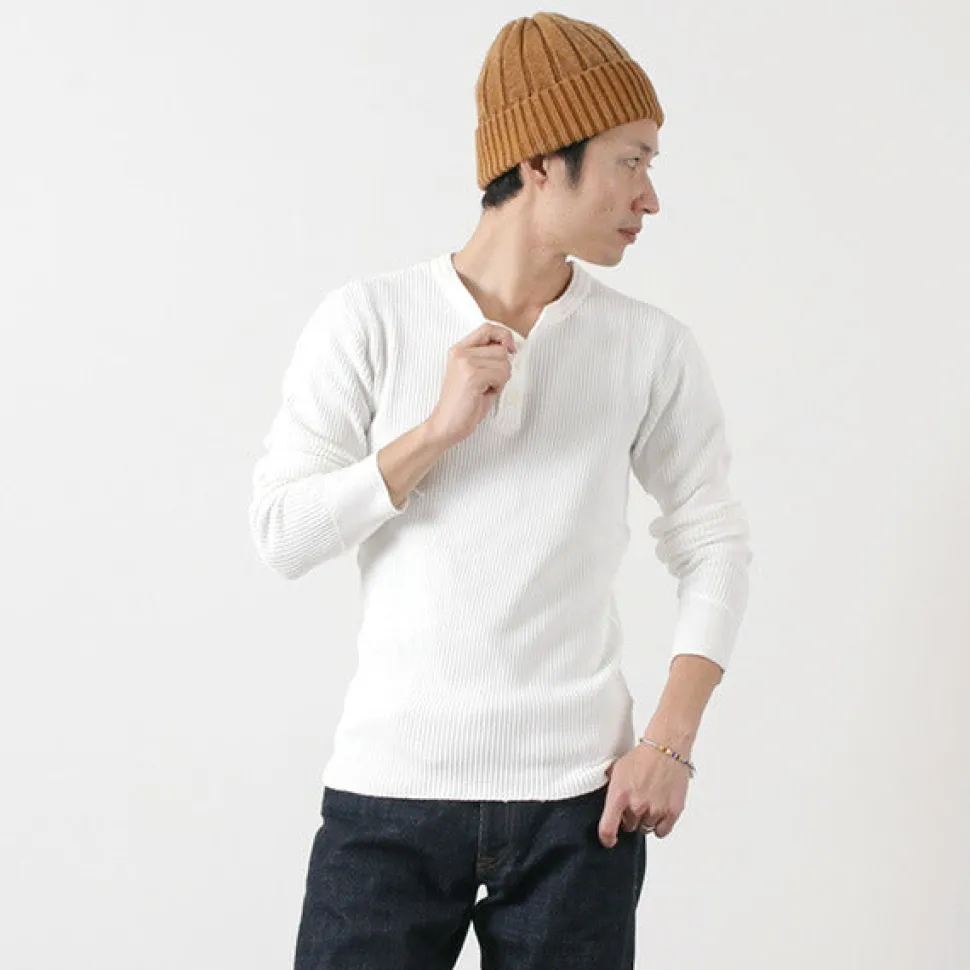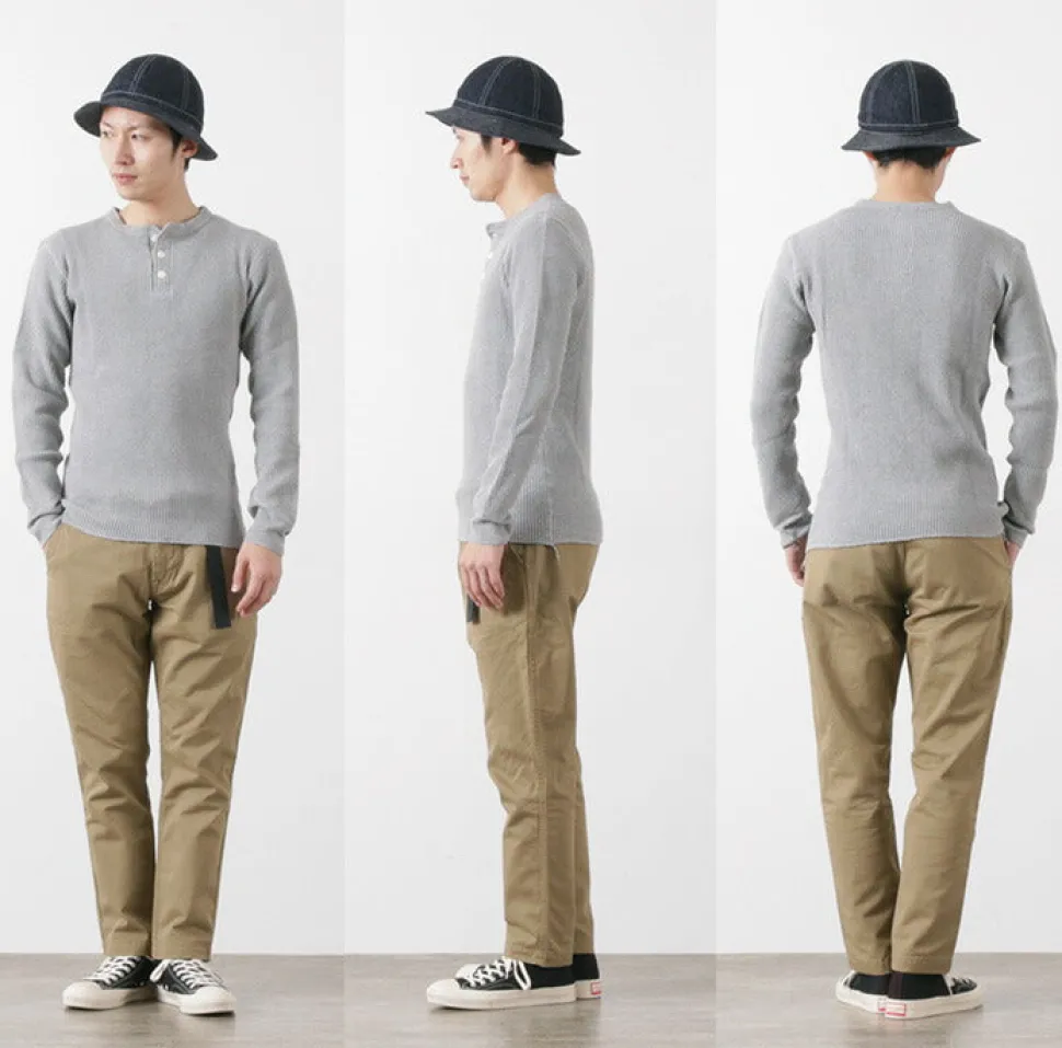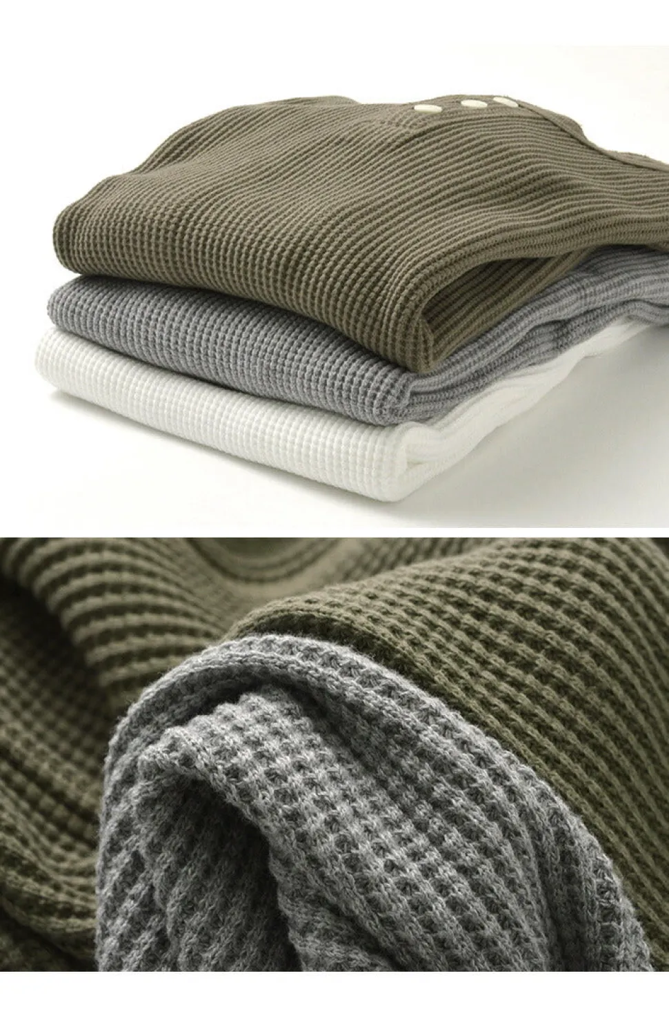 Thermal TeeBARNS Henley Neck T-Shirt is made from our classic Big Waffle fabric. It is originally a thermal with a strong connotation of underwear, but this item can be enjoyed simply as a single piece due to the thick fabric and detailing. Of course, it is also comfortable to wear as an inner layer, because it is also excellent for keeping out the cold. Also available in ROCOCO special order colours! The trendy and calm khaki colour is an original colour specially ordered by ROCOCO. The khaki colour is a trendy and subdued color, which is available only here.
