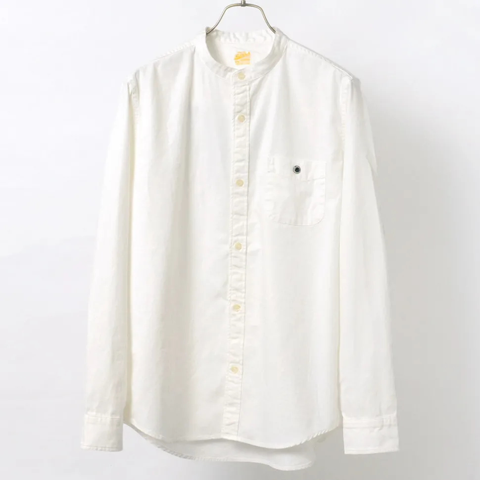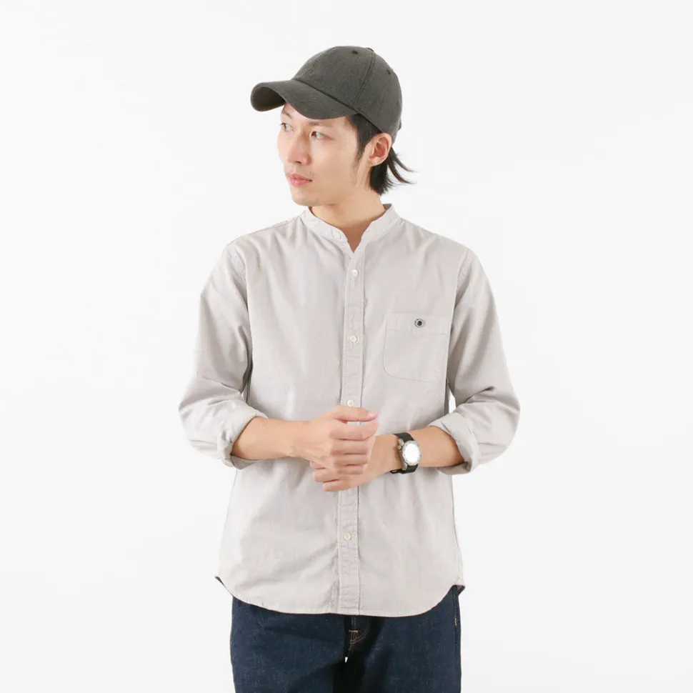 This is a band collar shirt that sticks to domestic production for all processes of sewing, dyeing, and washing. This shirt is made of carefully selected oxford fabric, dyed with product dyeing to give it a unique texture and a soft feel.