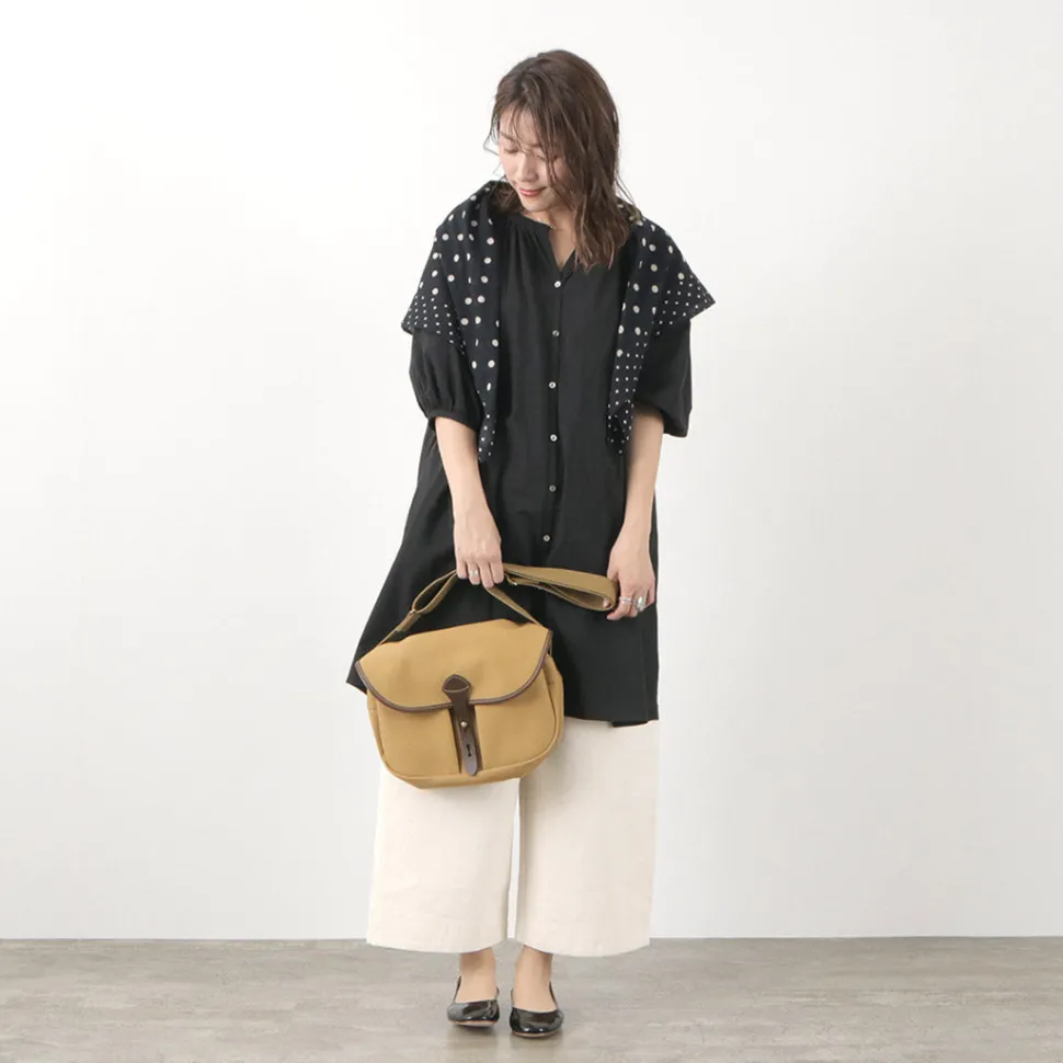 The bag is made of cotton polyester fabric with a water-repellent coating. By sandwiching a laminate film-like material between the fabrics, water is prevented from seeping in, allowing the bag to be used with peace of mind even on rainy days when it gets wet.